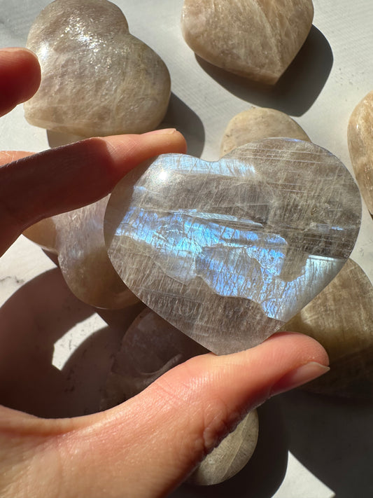 Blue Moonstone Heart with Flash (50–100g) – Intuition, Calm & Feng Shui Yin Energy for Love and Protection, Christmas Crystal Gift