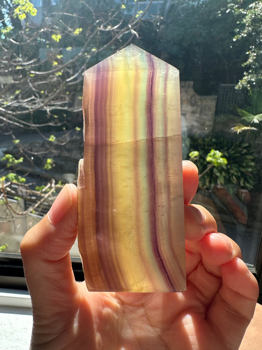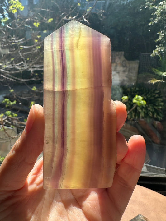 Flat Yellow Fluorite Tower 8–10 cm – Healing Crystal Tower for Focus, Confidence & Christmas Crystal Gift