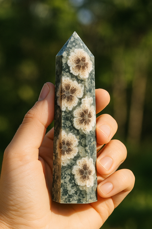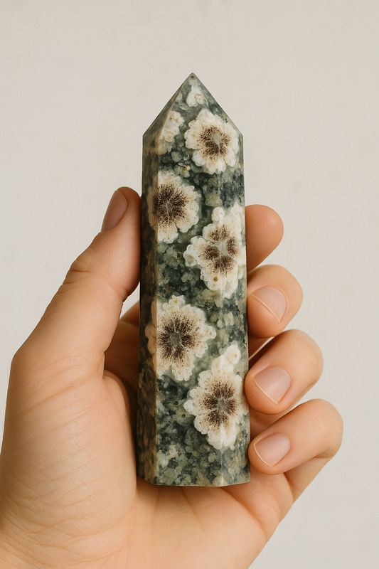 Green Flower Agate Tower – Natural Crystal from Madagascar (6–8cm) | Soothing Energy & Heart Healing Stone | Christmas Crystal Gift