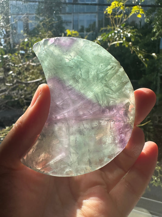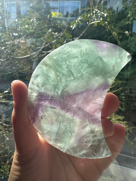 Large Feather Fluorite Moon – Rainbow Healing Crystal for Clarity and Protection | Meditation, Energy Cleansing & Spiritual Growth