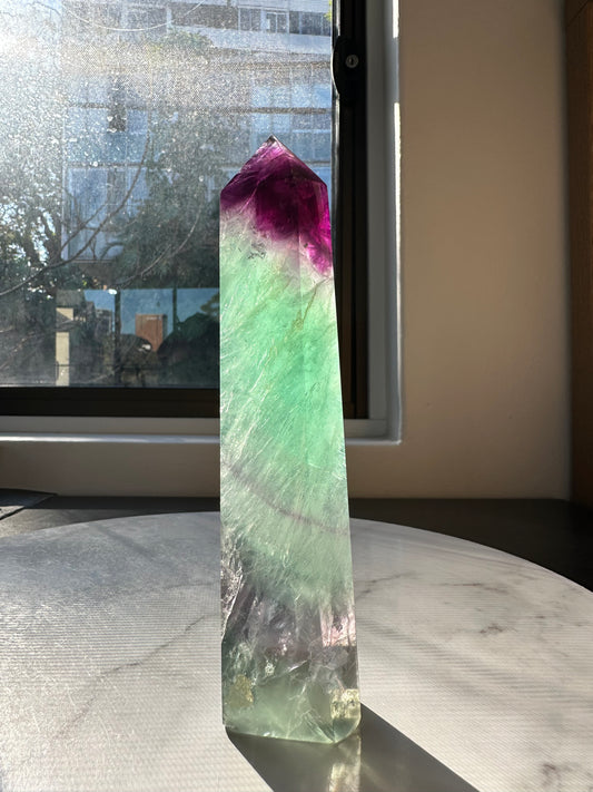 Large Watermelon Fluorite Tower w/ Rainbow & Kelp Inclusions | Calming Focus Crystal, christmas crystal gift #6