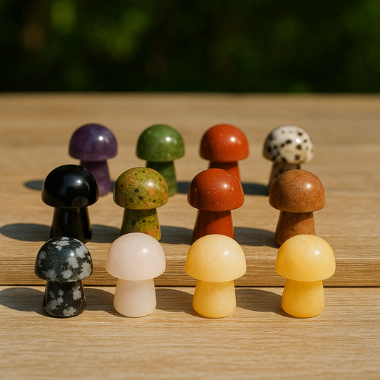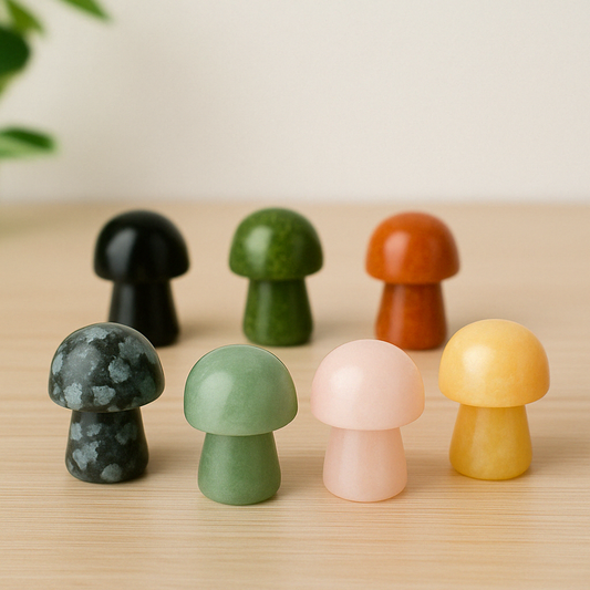 Mini Crystal Mushrooms – Set of 5 Mixed Crystals | Natural Carved Crystal Mushrooms (3–3.5cm)