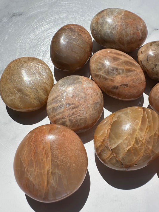 Orange Moonstone Palm Stone 4-5cm (Worry Stone) – Natural Peach Moonstone for Creativity, Intuition, Calming Energy & Christmas Crystal Gift
