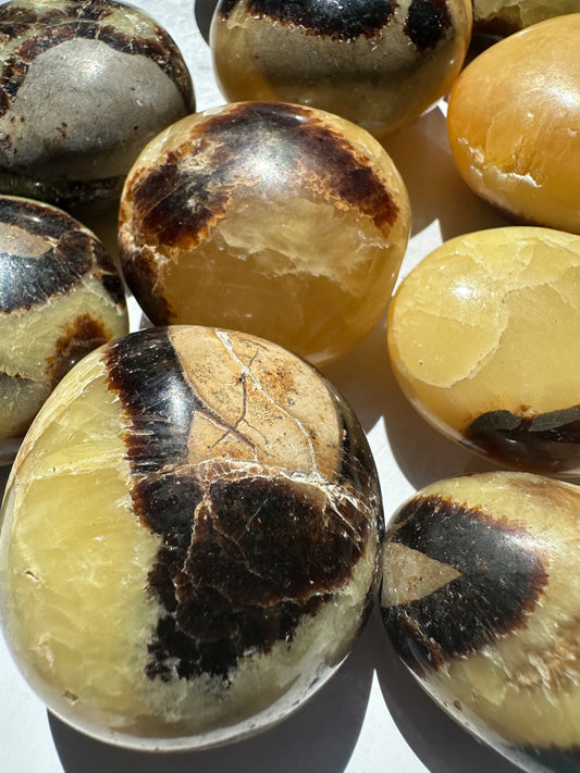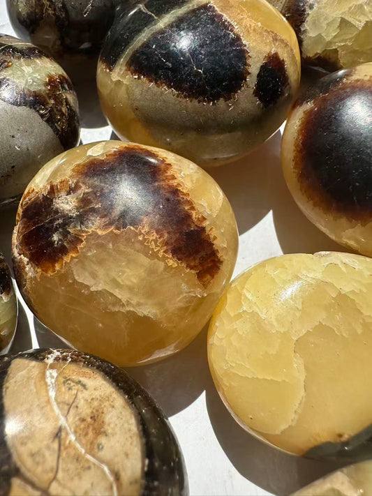 Septarian Palm Stone 4–5 cm (Dragon Stone) – Natural Polished Worry Stone for Grounding, Protection, Root & Sacral Chakra, Christmas Crystal Gift