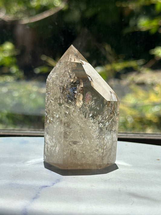 Smoky Quartz Azeztulite Tower with Rainbow, High Vibration Crystal, Healing Stone for Protection & Grounding, Christmas Crystal Gift