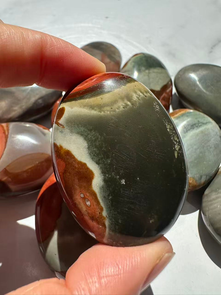 African Bloodstone Palm Stone 4–5 cm (Worry Stone) – Natural Heliotrope for Grounding, Courage, Protection, christmas crystal gift