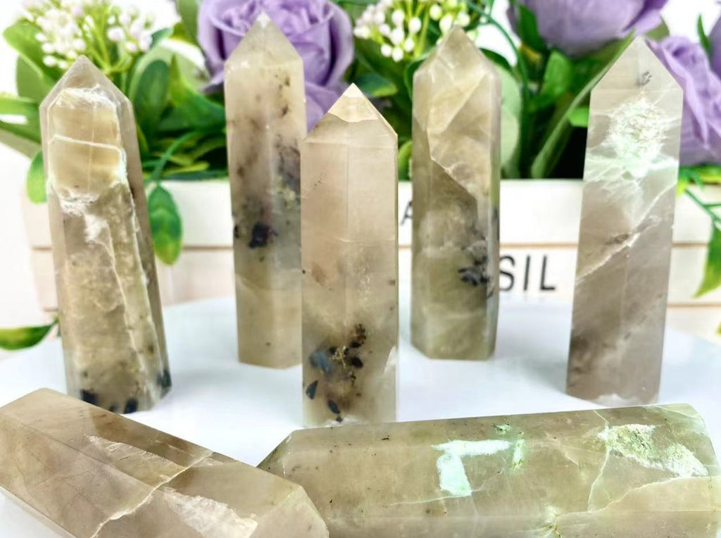 Enchanting Green Moonstone Tower Point Generator - Intuition, New Beginnings, & Emotional Balance,Cancer Season Crystal
