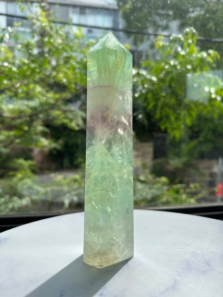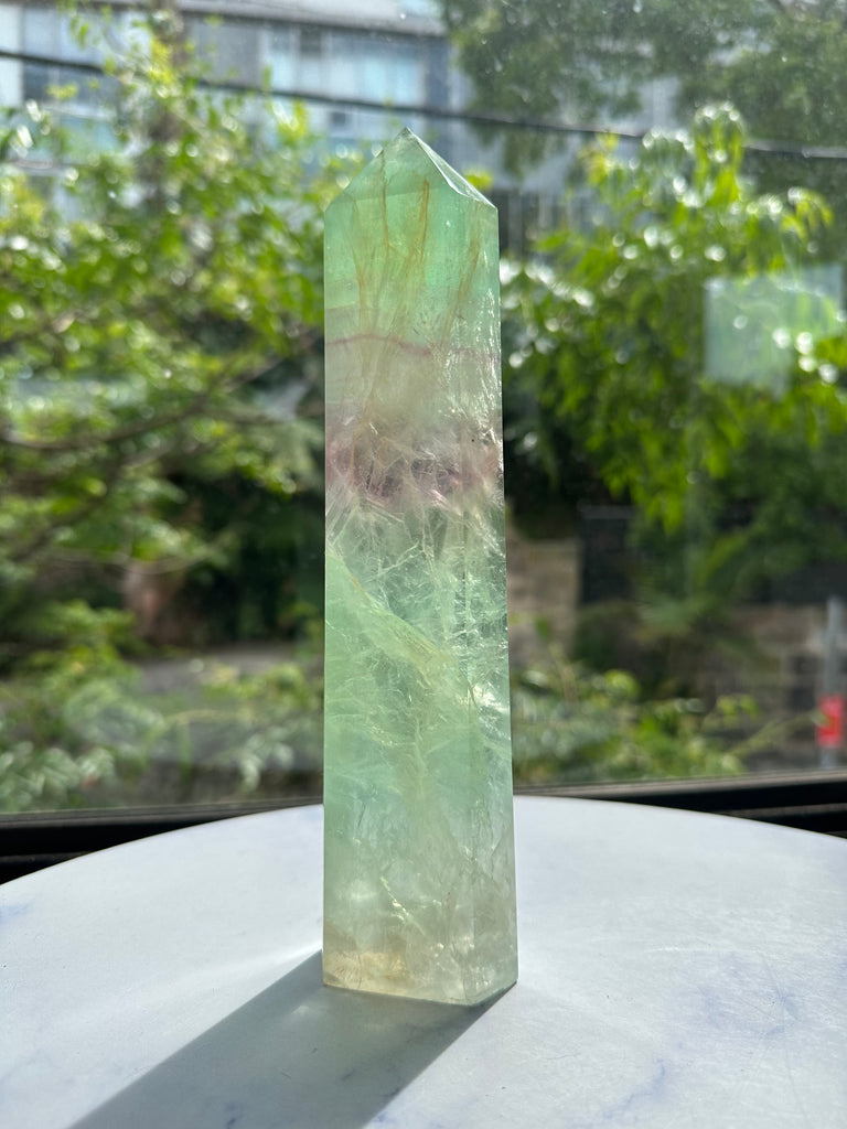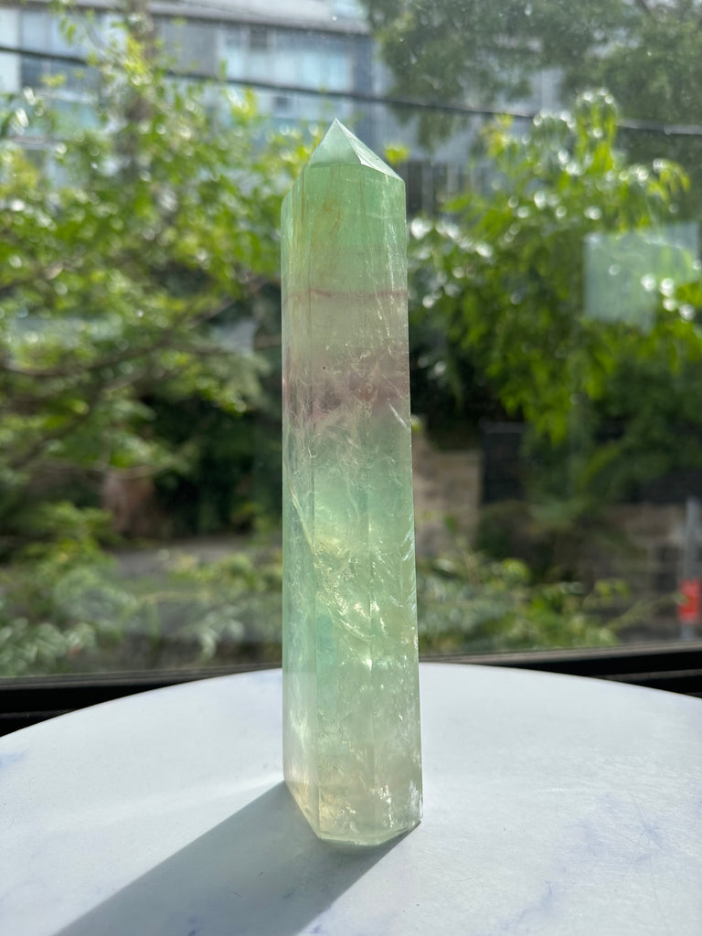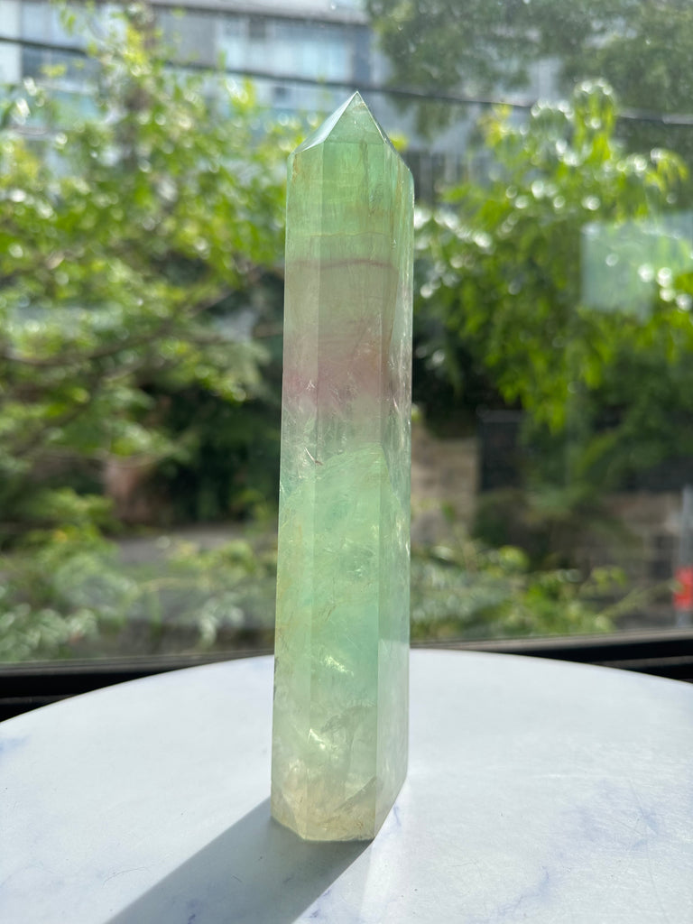 Introduction (The Hook - The Visual Appeal): Experience the mesmerizing beauty and dual-action benefits of this Large Watermelon Fluorite Tower. Named for its distinct, beautiful bands of green and soft pink, this crystal is a truly unique addition to any collection. The tower shape focuses its energy, making it an incredibly powerful tool for mental clarity.