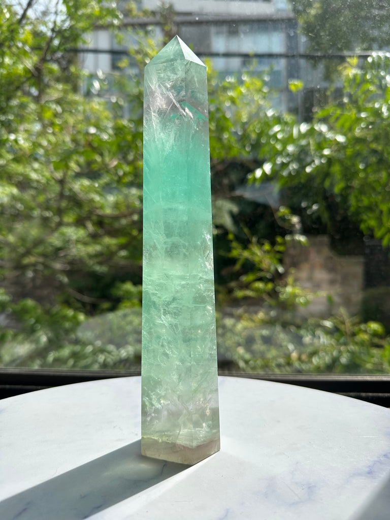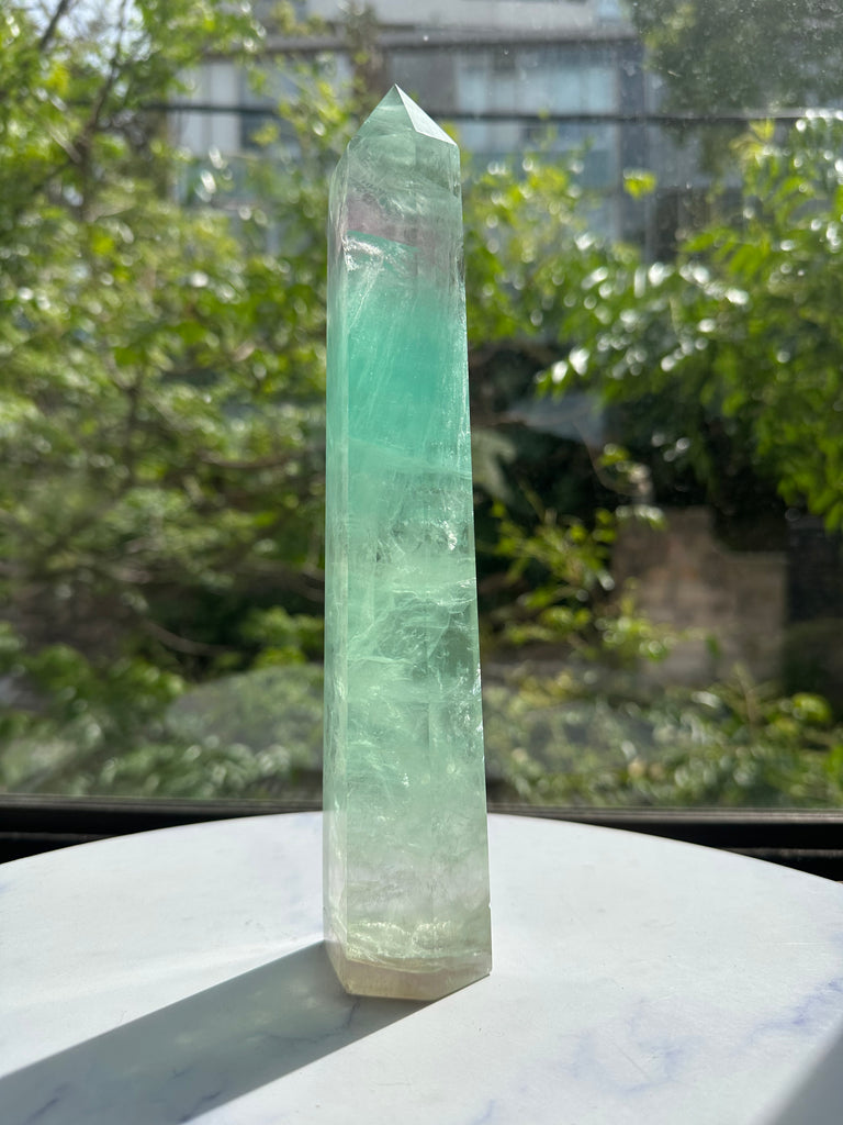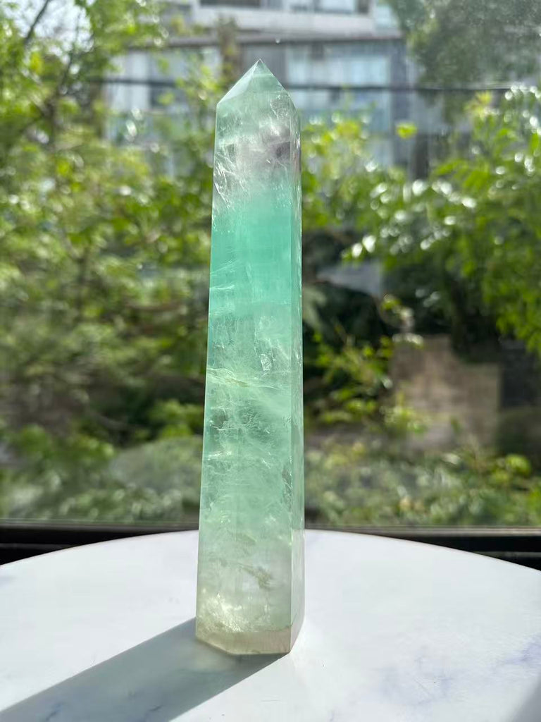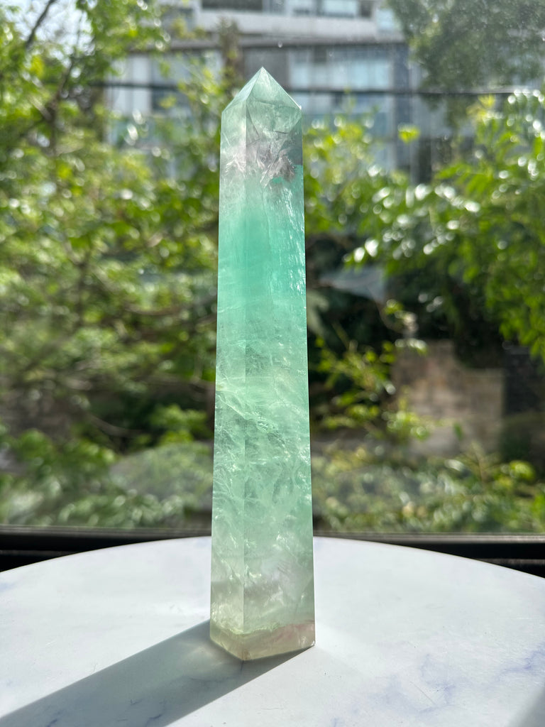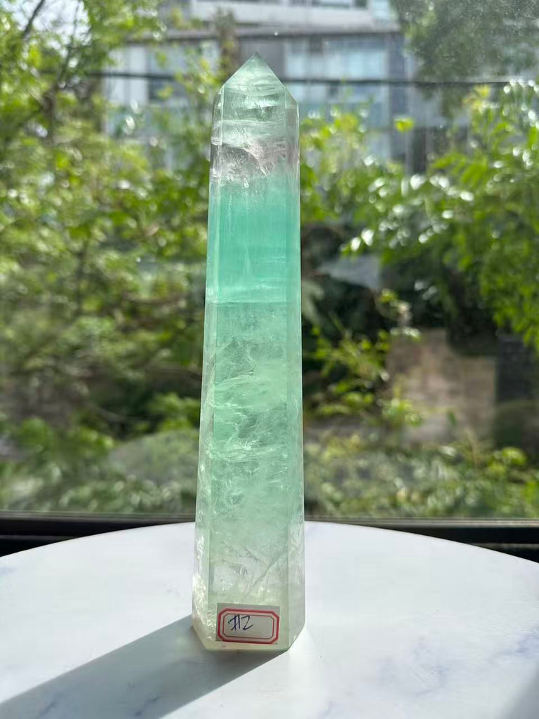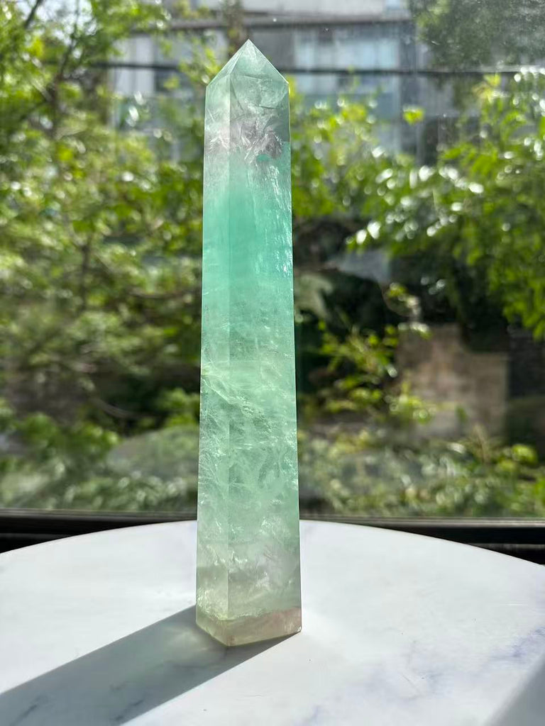 Introduction (The Hook - The Visual Appeal): Experience the mesmerizing beauty and dual-action benefits of this Large Watermelon Fluorite Tower. Named for its distinct, beautiful bands of green and soft pink, this crystal is a truly unique addition to any collection. The tower shape focuses its energy, making it an incredibly powerful tool for mental clarity.