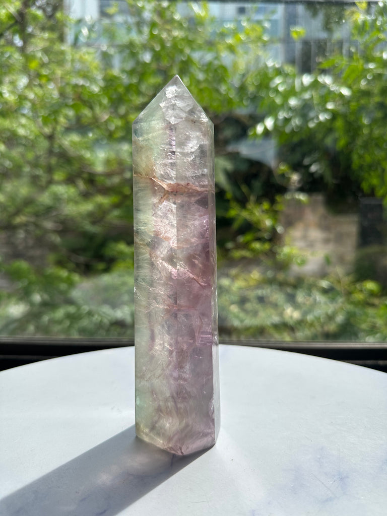 Boosted Focus & Study Aid: Fluorite is often called the "Genius Stone." This tower amplifies that energy, clearing mental fog and enhancing concentration for work, study, or meditation.