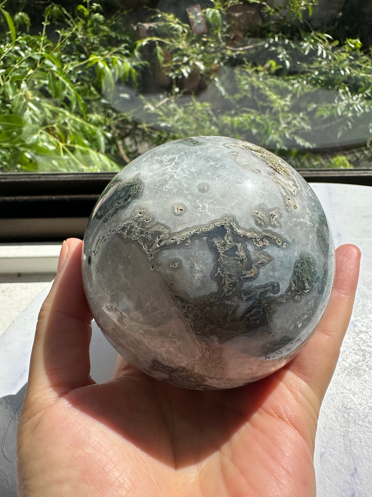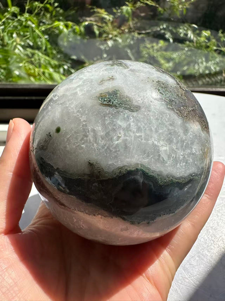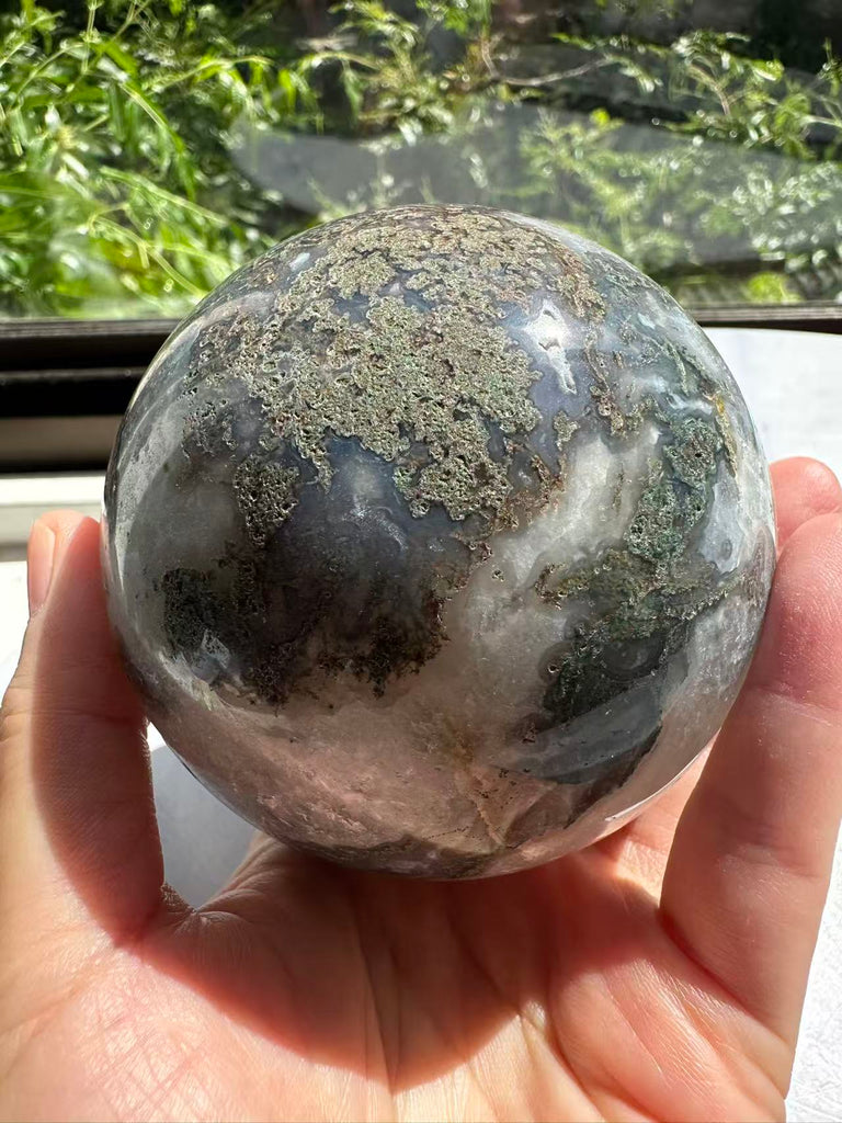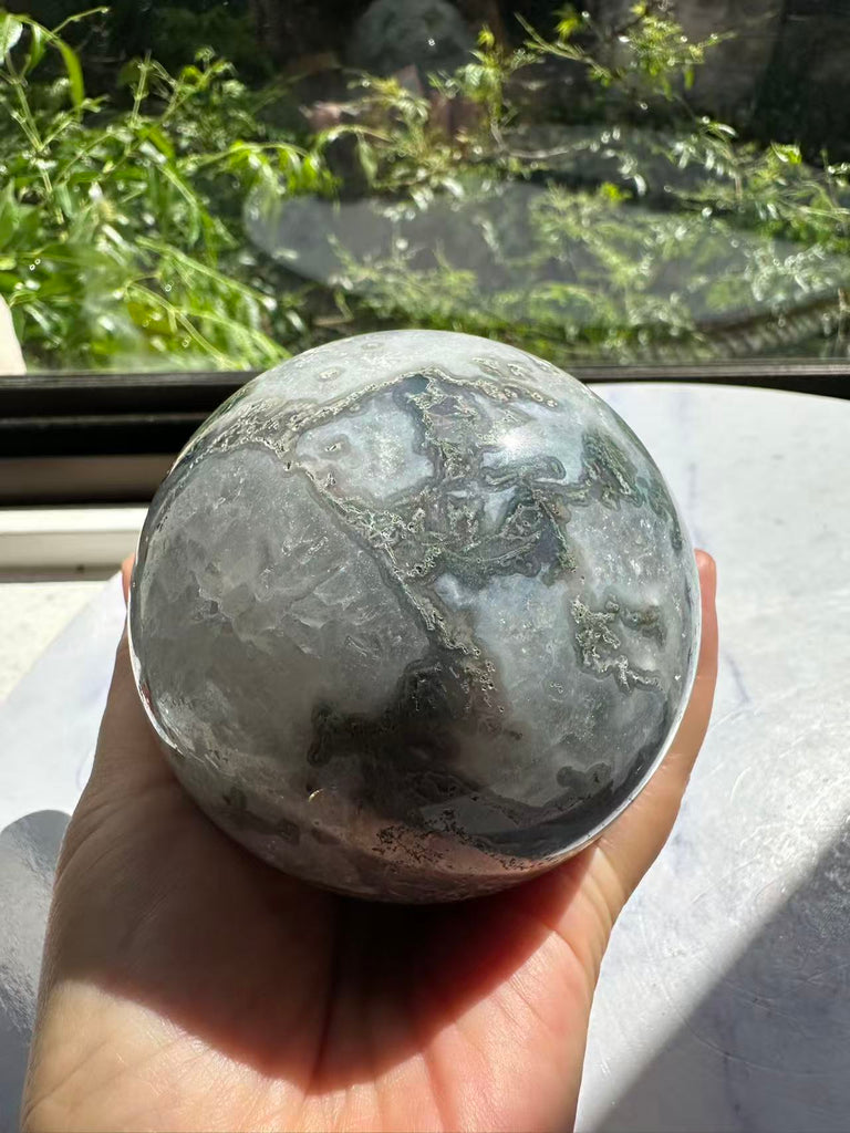 🌿 Large Moss Agate Sphere: Your Personal Piece of the Forest