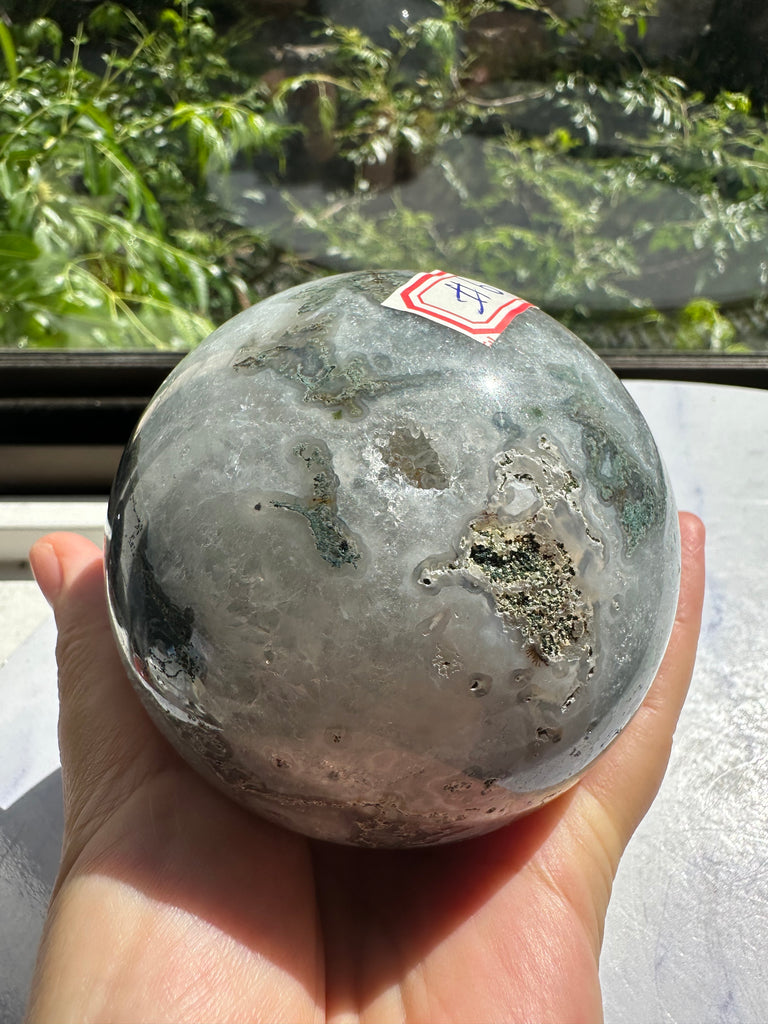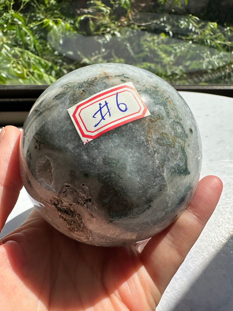 Large Natural Moss Agate Sphere | Grounding & Nature Connection Crystal - christmas crystal gift #6
