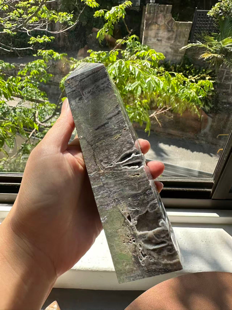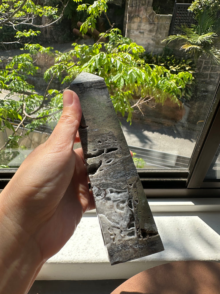 Sphalerite is a high-vibration crystal known for anchoring intense energies into the physical realm. The tower shape naturally amplifies and directs these energies upward and outward.