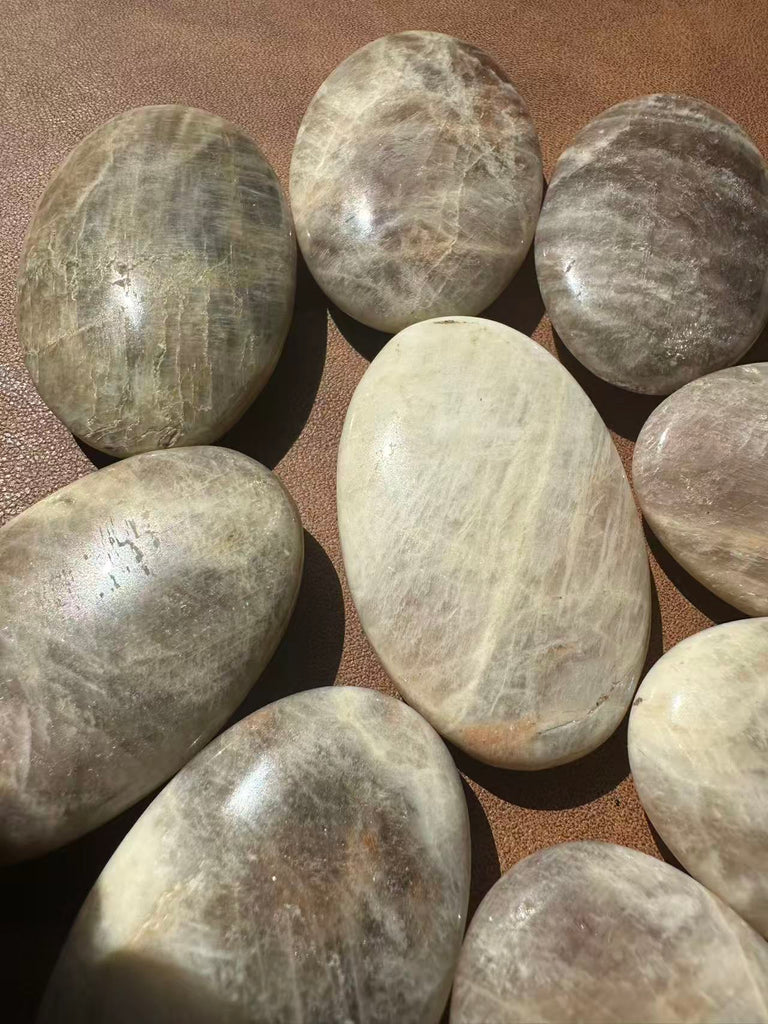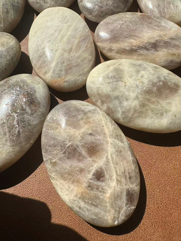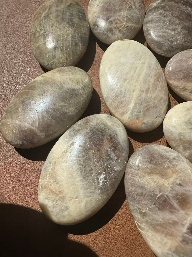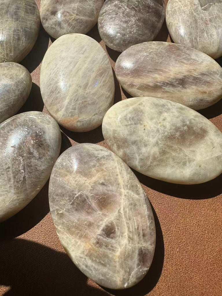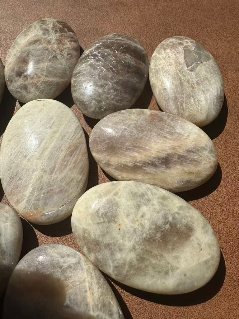 Feeling lost in a cycle of change? The Moonstone Palm Stone is your gentle yet powerful companion for tapping into your Divine Feminine energy. Each natural palm stone features an ethereal, captivating High Flash (Adularescence)—a shimmering blue or rainbow glow that dances in the light, symbolizing the deep well of intuition within you.