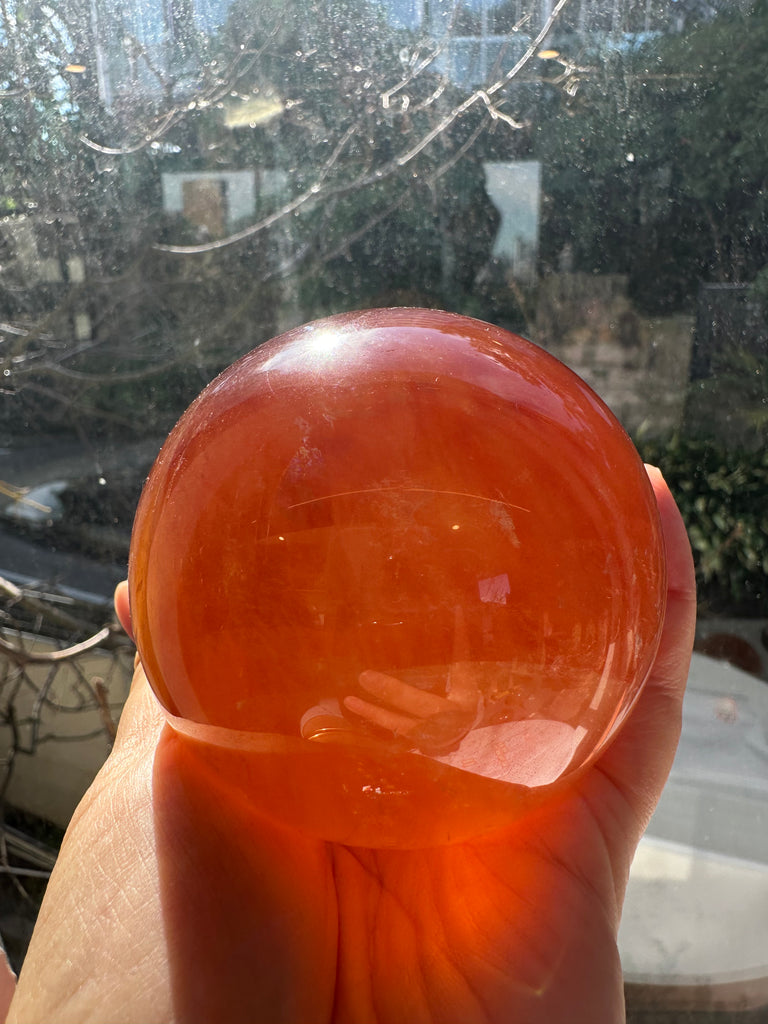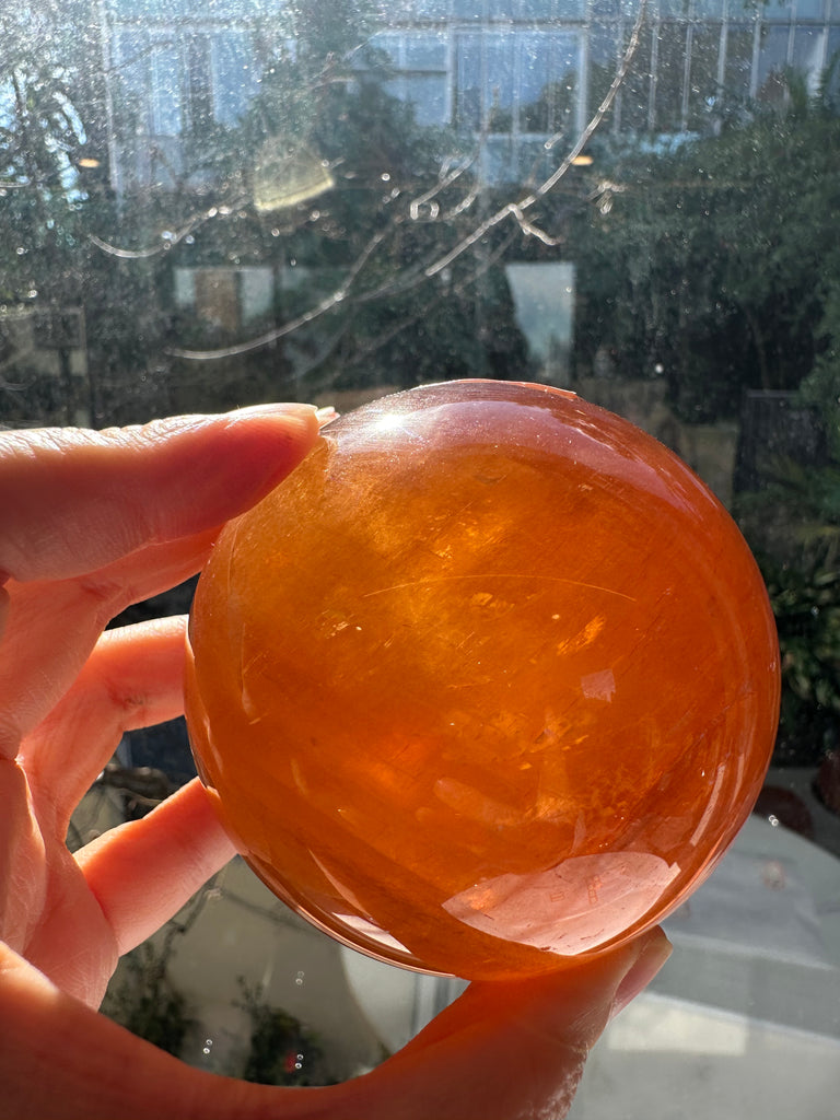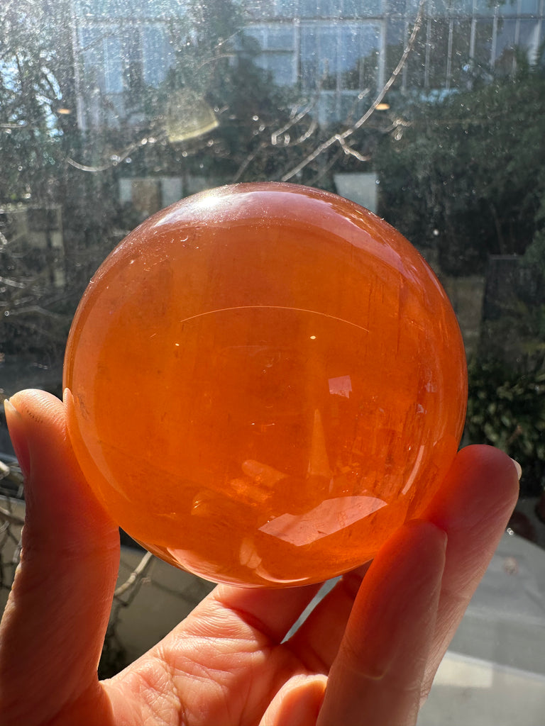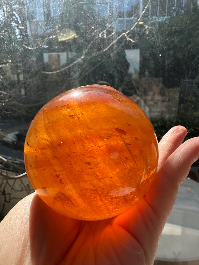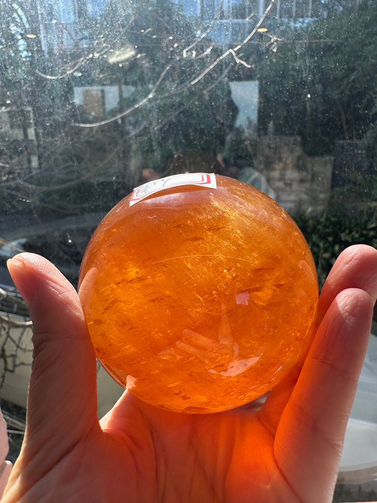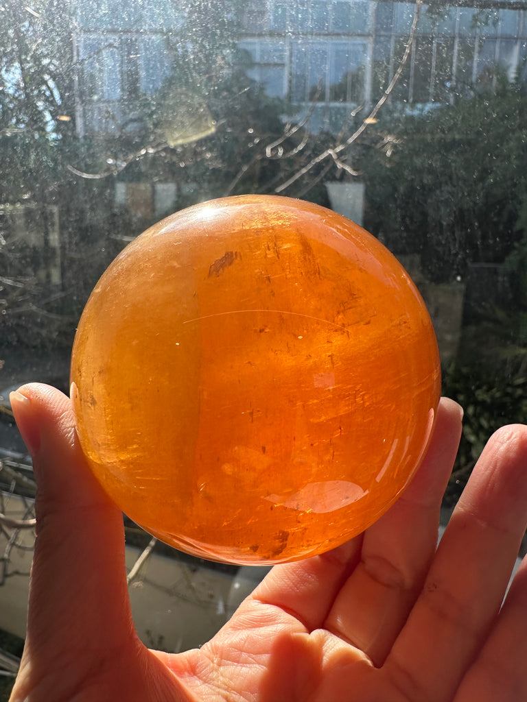 Bring warmth and vibrant energy into your space with this gorgeous Yellow Calcite sphere. Its sunny glow and smooth, polished surface make it a perfect addition to any crystal collection or as a striking piece of décor.