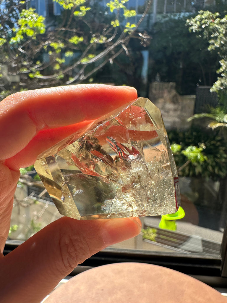 Golden glow, high vibes, and prismatic rainbows—this rare citrine Azeztulite freeform is a joy magnet and a powerful ally for confidence and abundance.