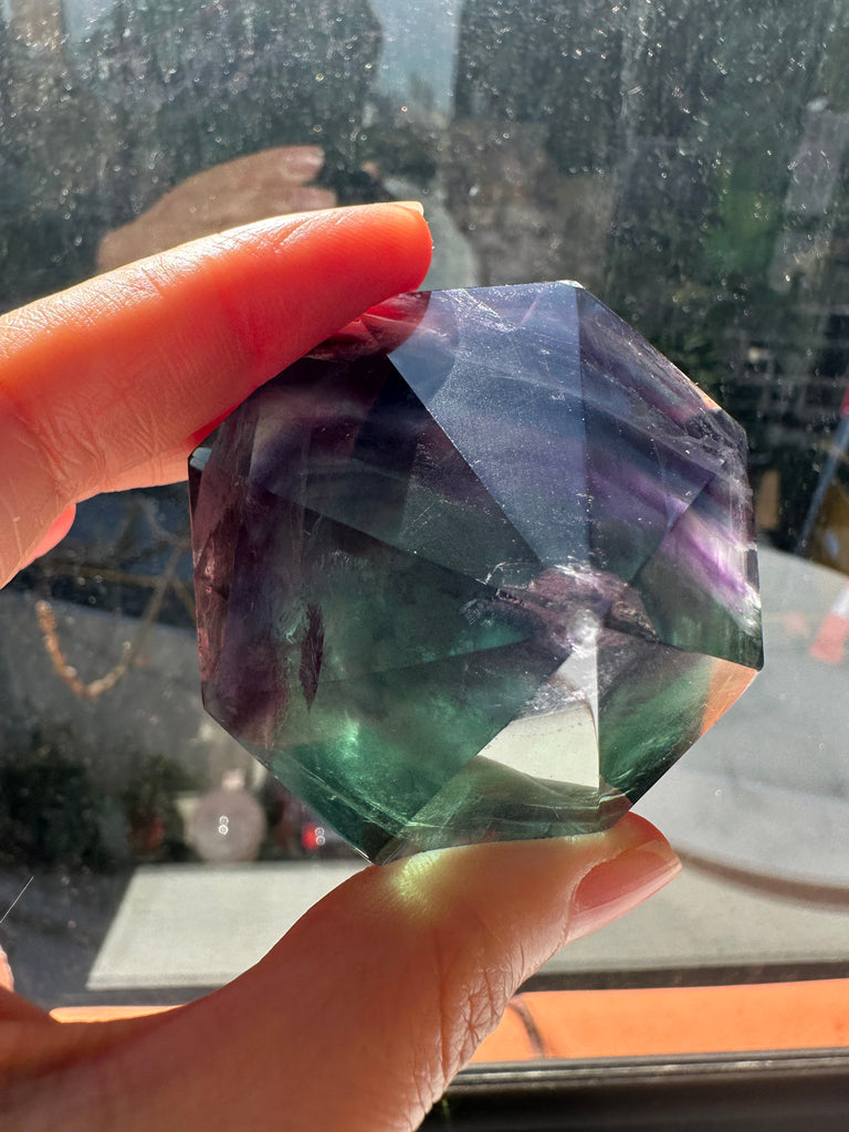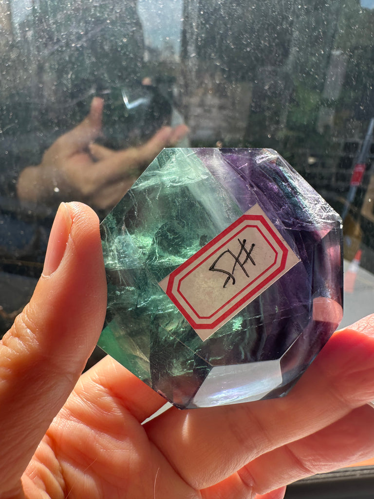 Fluorite is known as the "Genius Stone," supporting clarity, concentration, and energetic protection. Combined with the precision of a diamond cut, this piece is ideal for crystal grids, focused meditation, or as a striking addition to your spiritual collection.