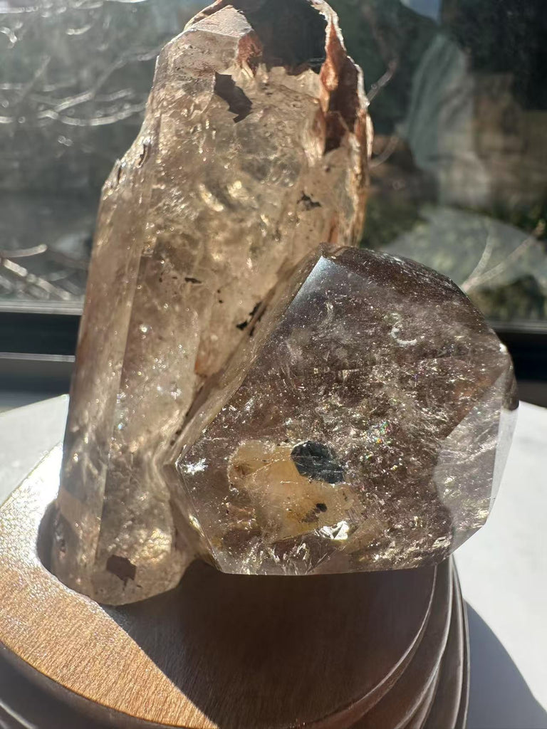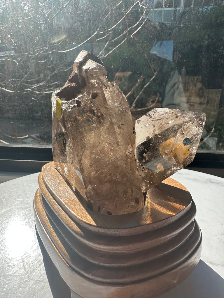 Discover the natural power of this Rare Large Smoky Quartz Twin Tower, a stunning twin point formation that symbolizes unity, harmony, and balanced relationships.