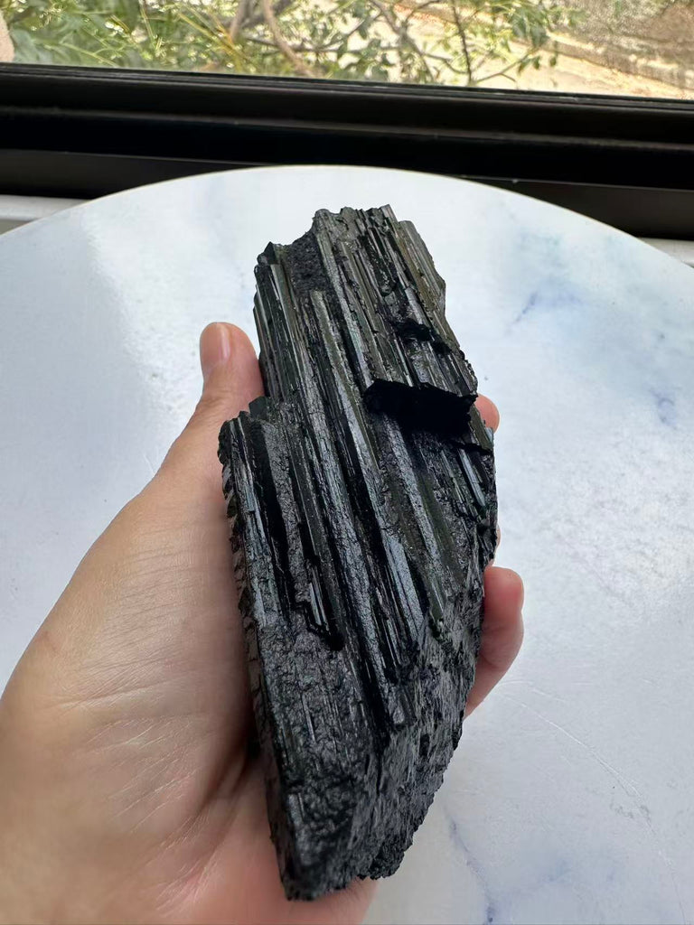 In its unpolished state, Black Tourmaline serves as a powerful organic sculpture. Its rugged, columnar structure acts as a natural conductor for energy, making it the premier choice for those seeking to maintain a clean, balanced, and high-vibration atmosphere in their home or workspace.