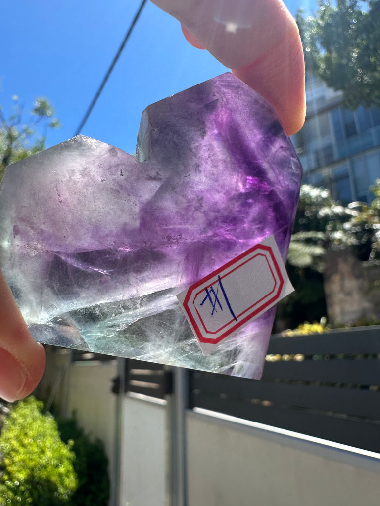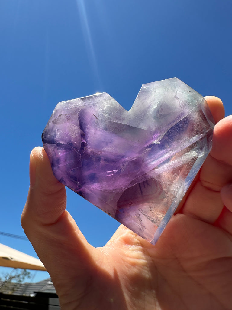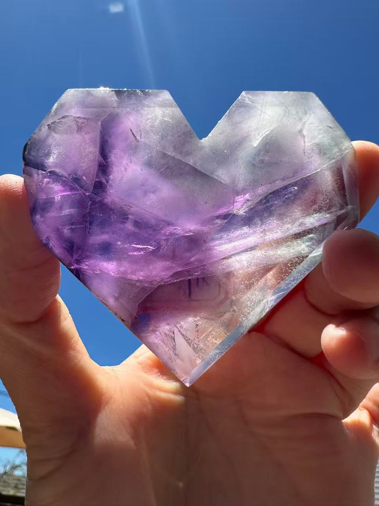 The Story of the Feather Fluorite (Establishing Rarity and Value): Elevate your collection with this magnificent Rare Feather Fluorite Heart. Known for its delicate, plume-like inclusions that resemble soft feathers, this unique form of Fluorite is a genuine collector's dream. Each heart is entirely one-of-a-kind, showcasing a breathtaking dance of colors—from rich purples and greens to translucent quartz.