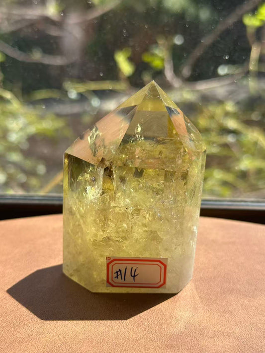 AAAA Premium Citrine Tower w Rainbow from Brazil - Vibration Citrine Point for Abundance - Brazilian Citrine Crystal #14