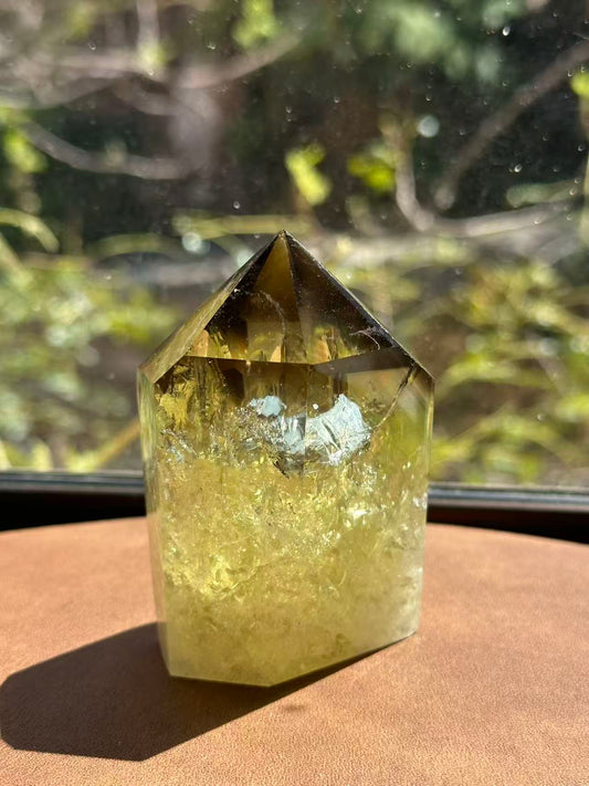 AAAA Premium Citrine Tower w Rainbow from Brazil - Vibration Citrine Point for Abundance - Brazilian Citrine Crystal #13
