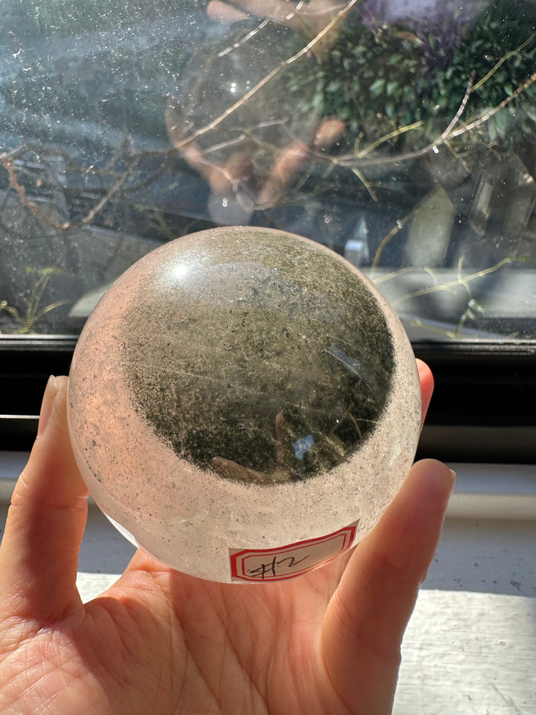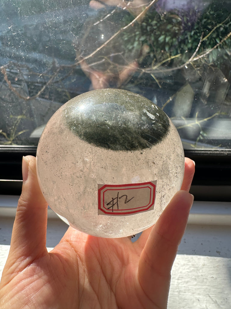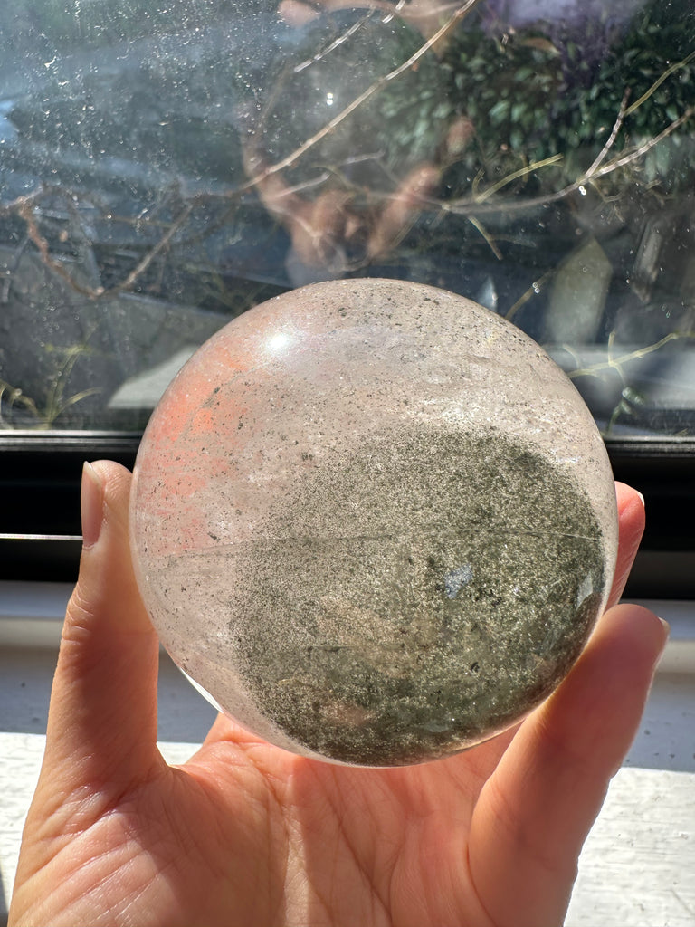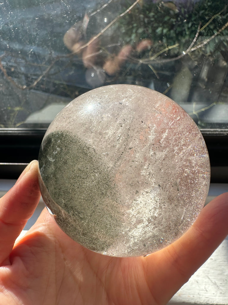 Garden Quartz Sphere w Layers Natural Lodolite Crystal Ball healing crystal decor crystal gift green phantom quartz crystal collection, Christmas Crystal Gift #2