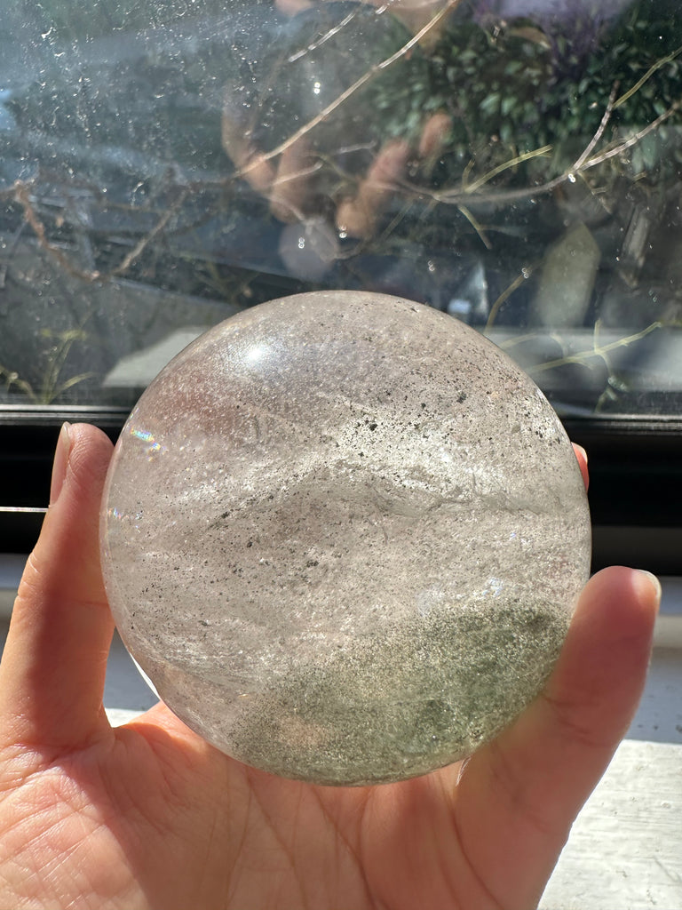 Discover the mesmerizing beauty of our Garden Quartz Sphere, also known as Lodolite Quartz, a natural gemstone filled with stunning inclusions that resemble lush landscapes, underwater scenes, or cosmic galaxies. Each sphere is unique, making it a perfect addition to your crystal collection, meditation practice, or home dƩcor.