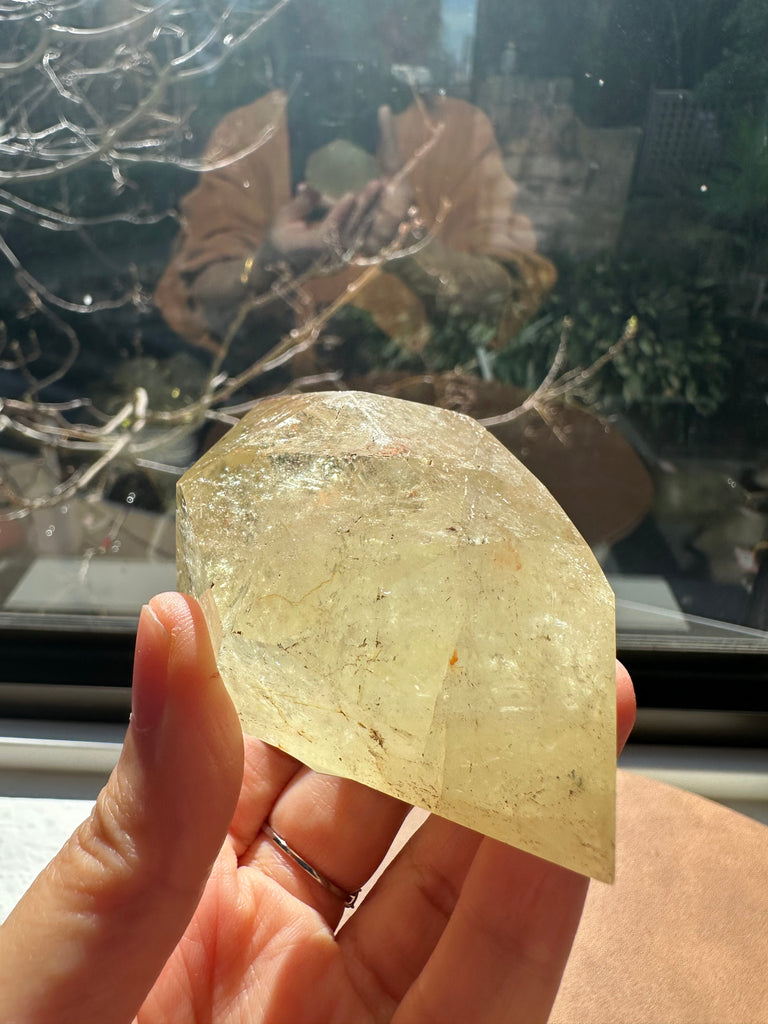 This stunning high-quality Citrine double terminated point weighs 167g and features beautiful rainbow inclusions, making it not only a powerful energy tool but also a visually captivating piece for your space.