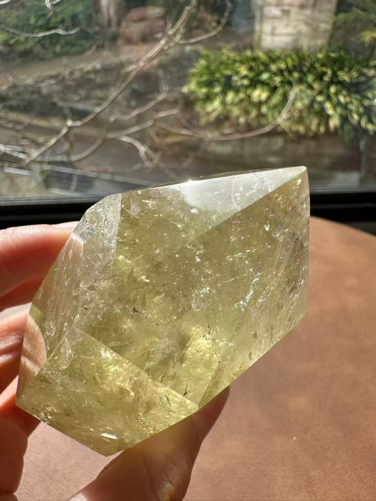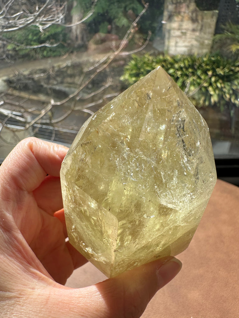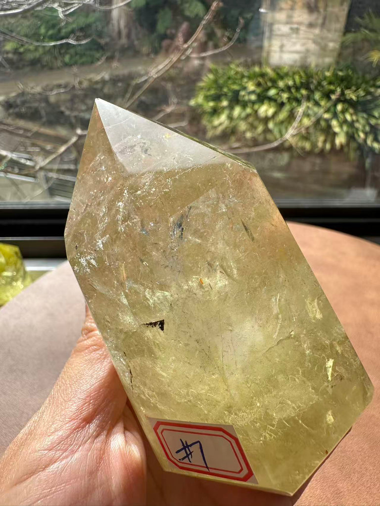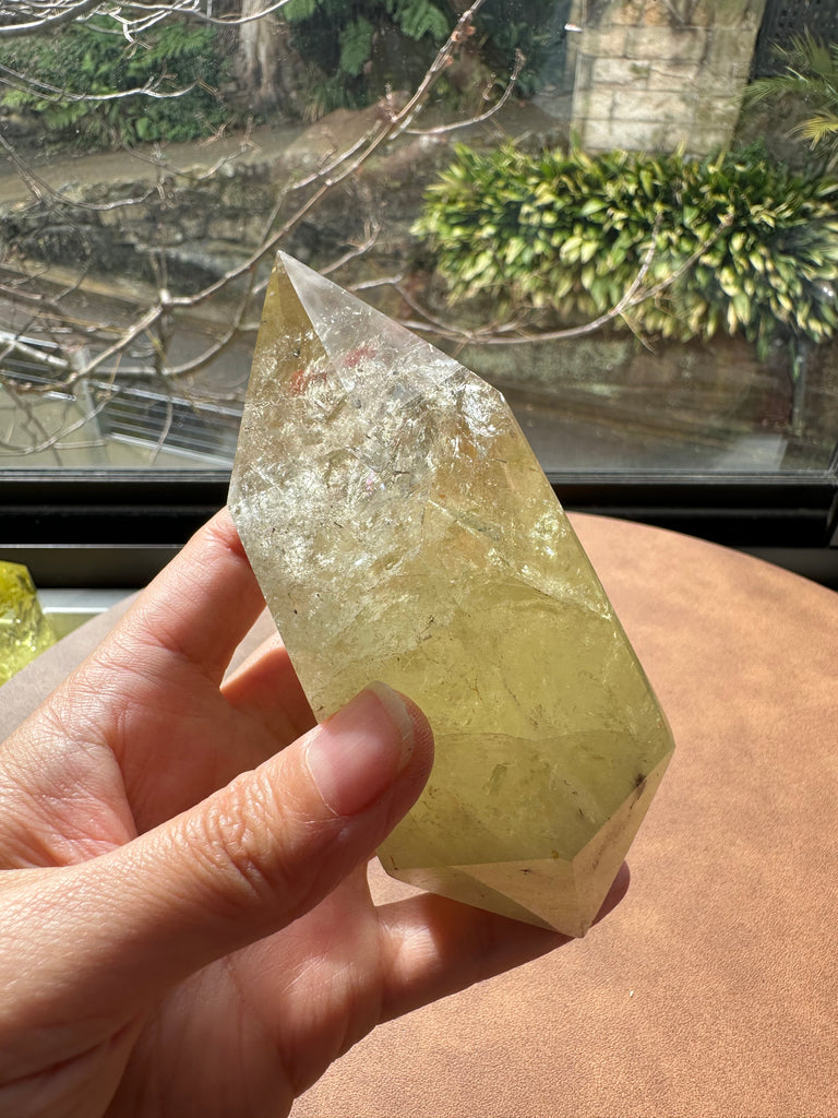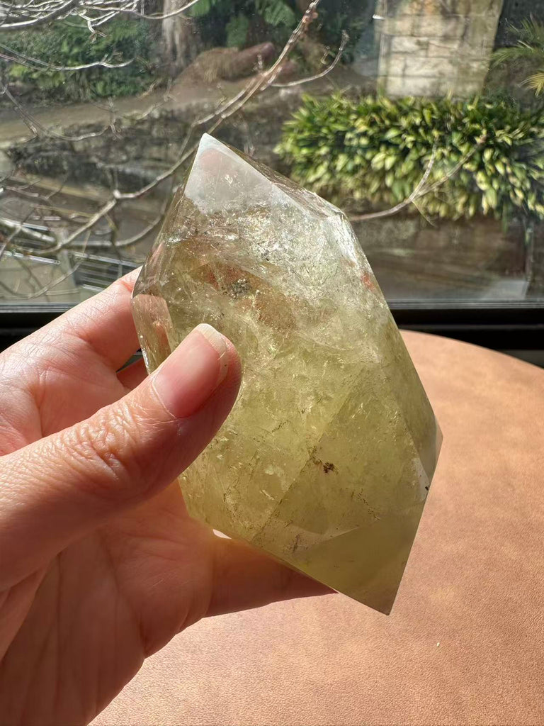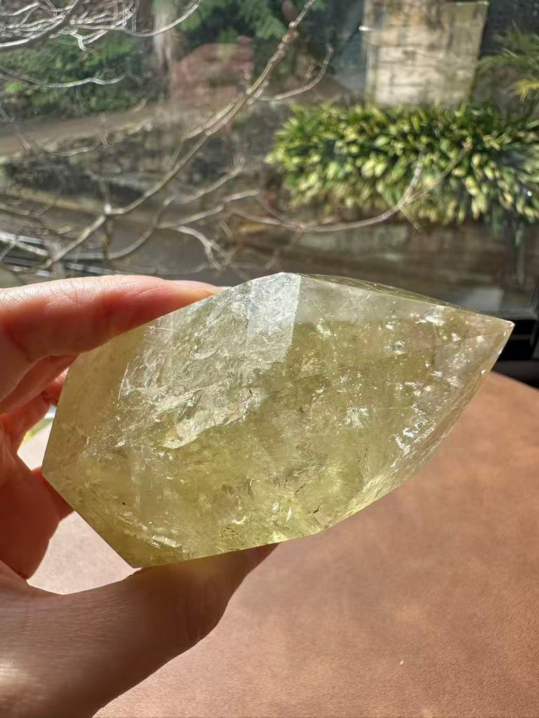 This stunning high-quality Citrine double terminated point weighs 167g and features beautiful rainbow inclusions, making it not only a powerful energy tool but also a visually captivating piece for your space.