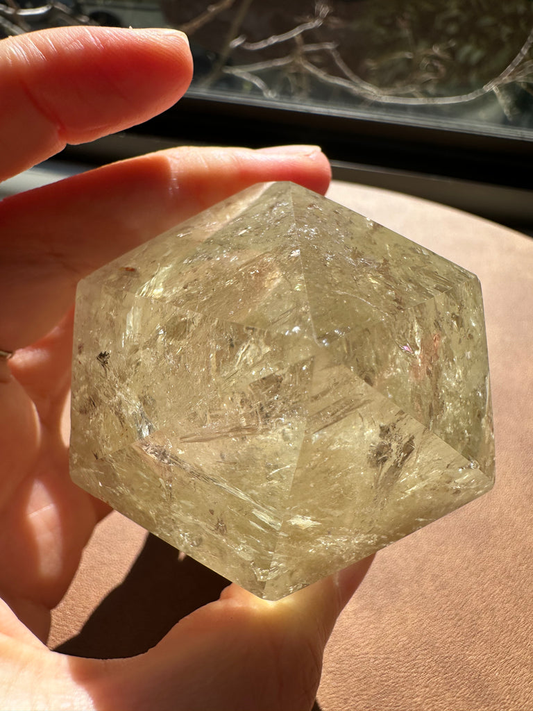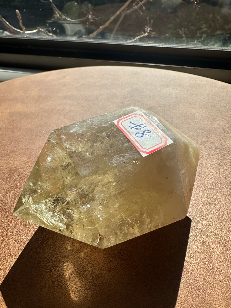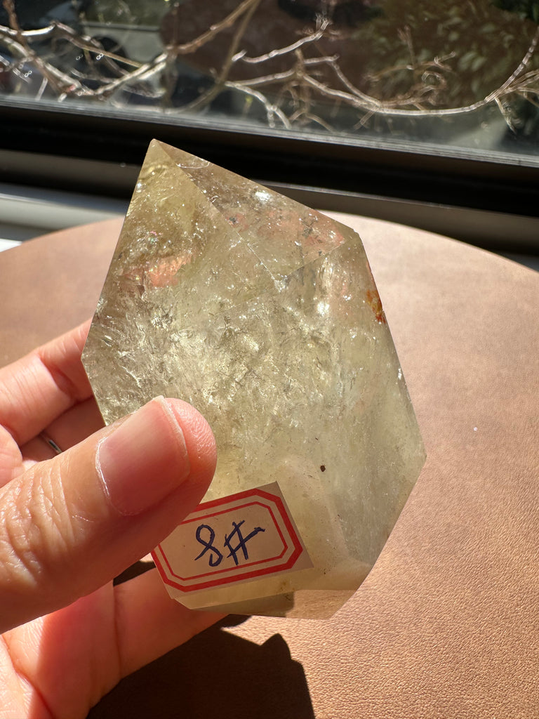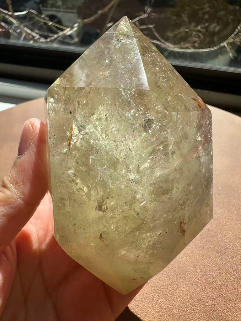 This stunning high-quality Citrine double terminated point weighs 167g and features beautiful rainbow inclusions, making it not only a powerful energy tool but also a visually captivating piece for your space.