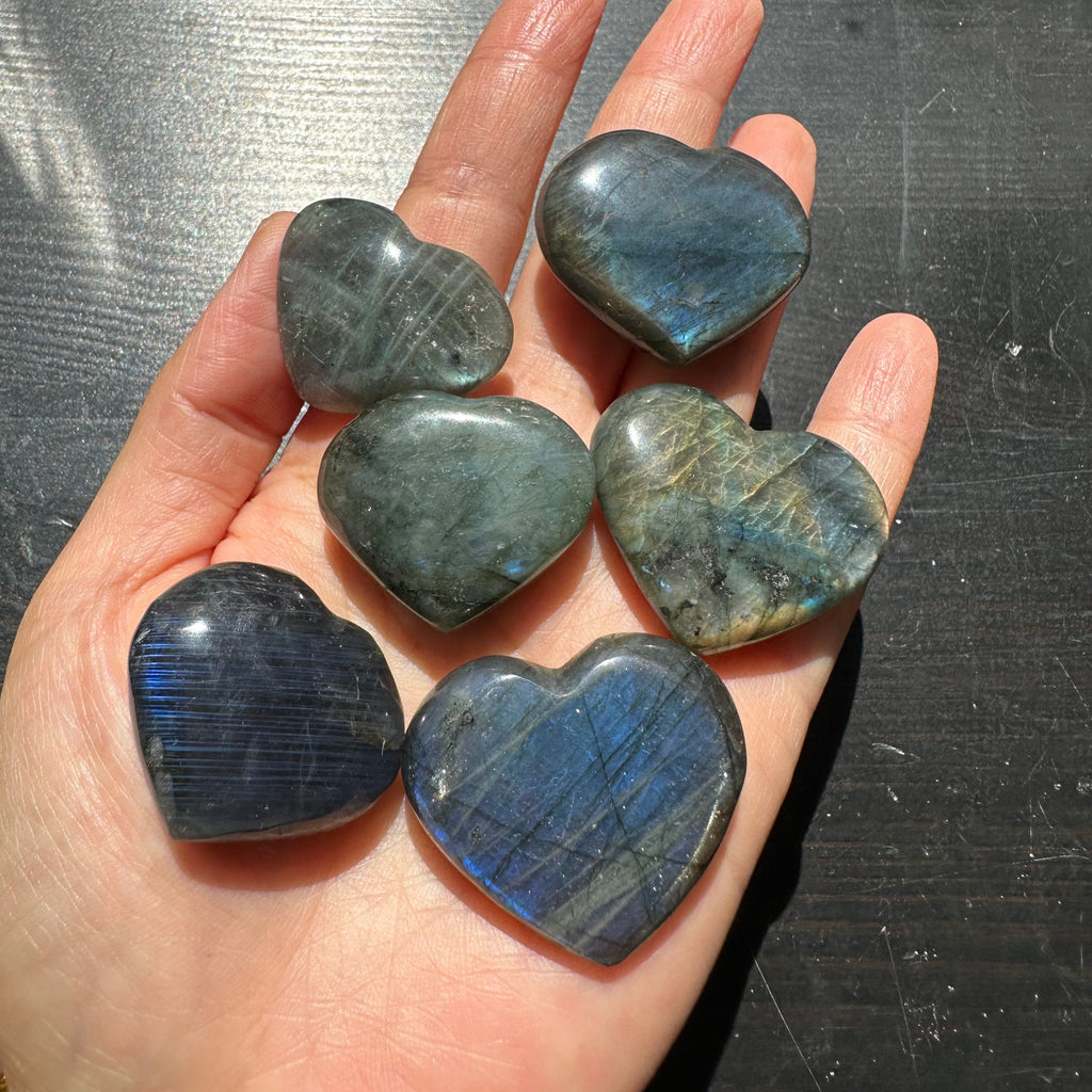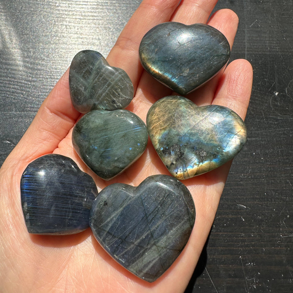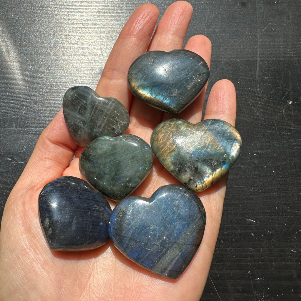 Size and Quality: Each Labradorite heart is unique, showcasing a range of beautiful colors and patterns. Its smooth surface and comforting shape make it perfect for display or as a meditative tool.