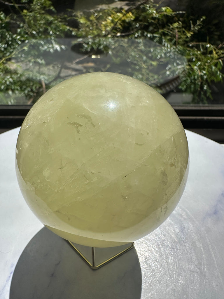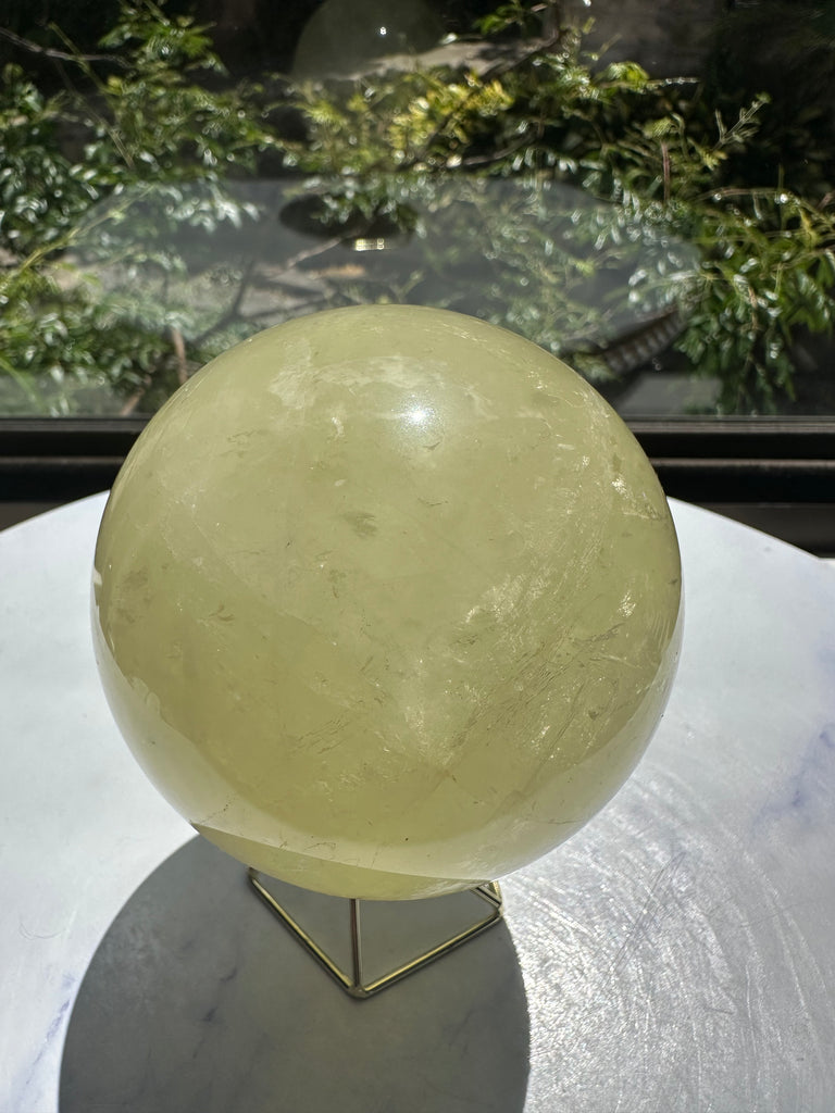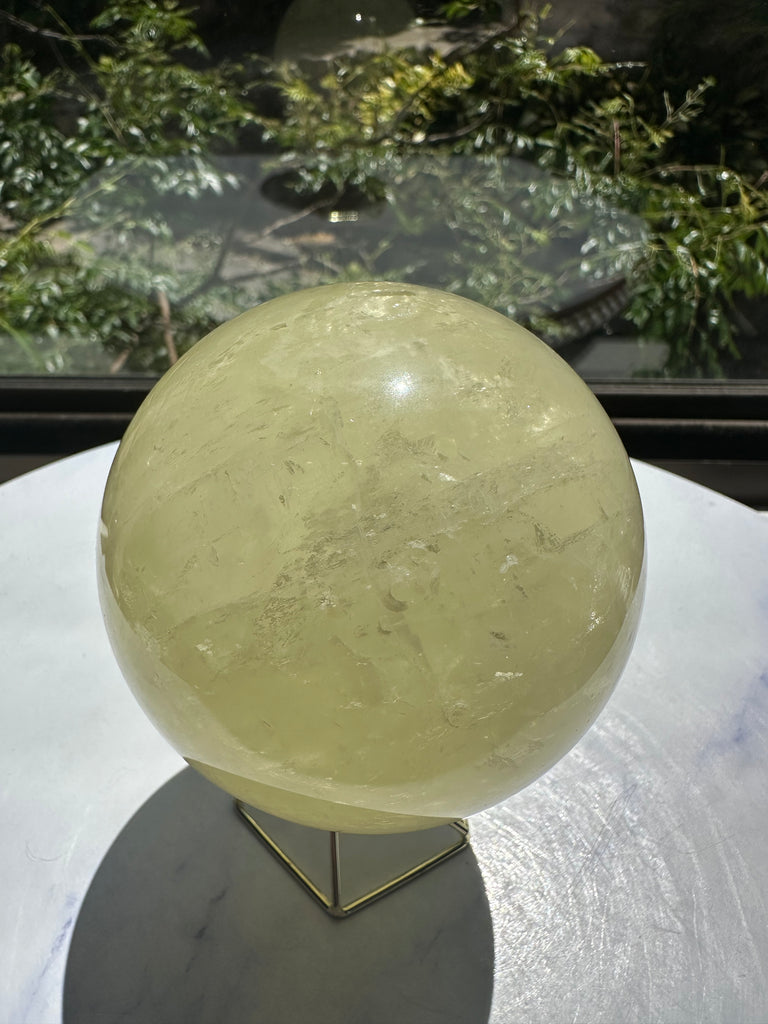 Citrine is believed to help dispel negative energy, boost confidence, and foster creativity. This large Citrine sphere is a beautiful addition to any meditation area, workspace, or home decor, bringing a sense of joy and abundance to your surroundings.
