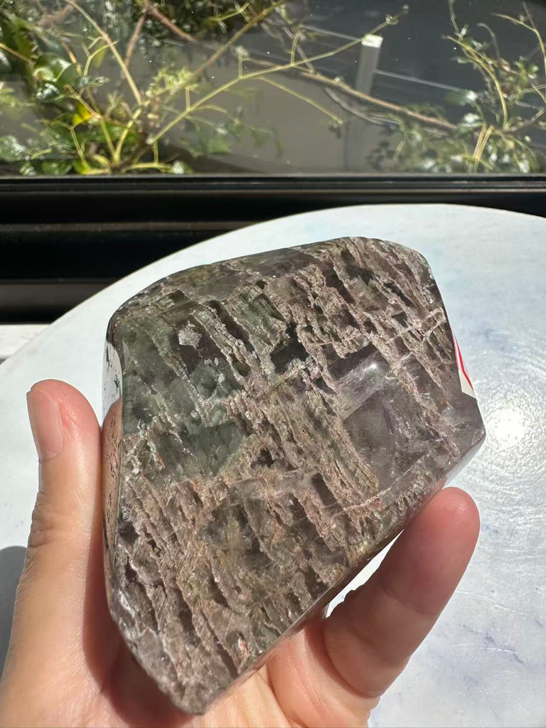 Step into the enchanting world of our Large Garden Quartz Freeform, also known as Lodolite. This extraordinary specimen features a mesmerizing "landscape" of natural mineral inclusions—such as chlorite, feldspar, and iron—beautifully suspended within water-clear quartz. Each piece is a private sanctuary, a frozen garden millions of years in the making.
