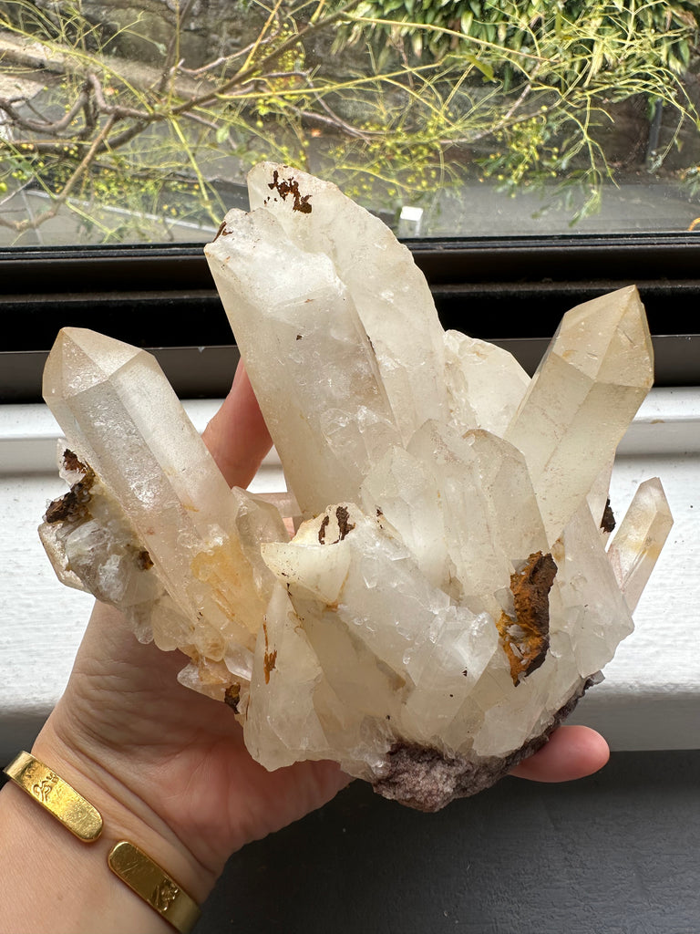 Each Clear Quartz cluster is a unique natural creation with varying points and formations, making each one-of-a-kind.
