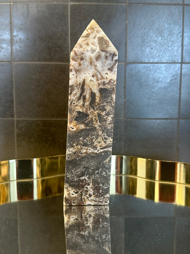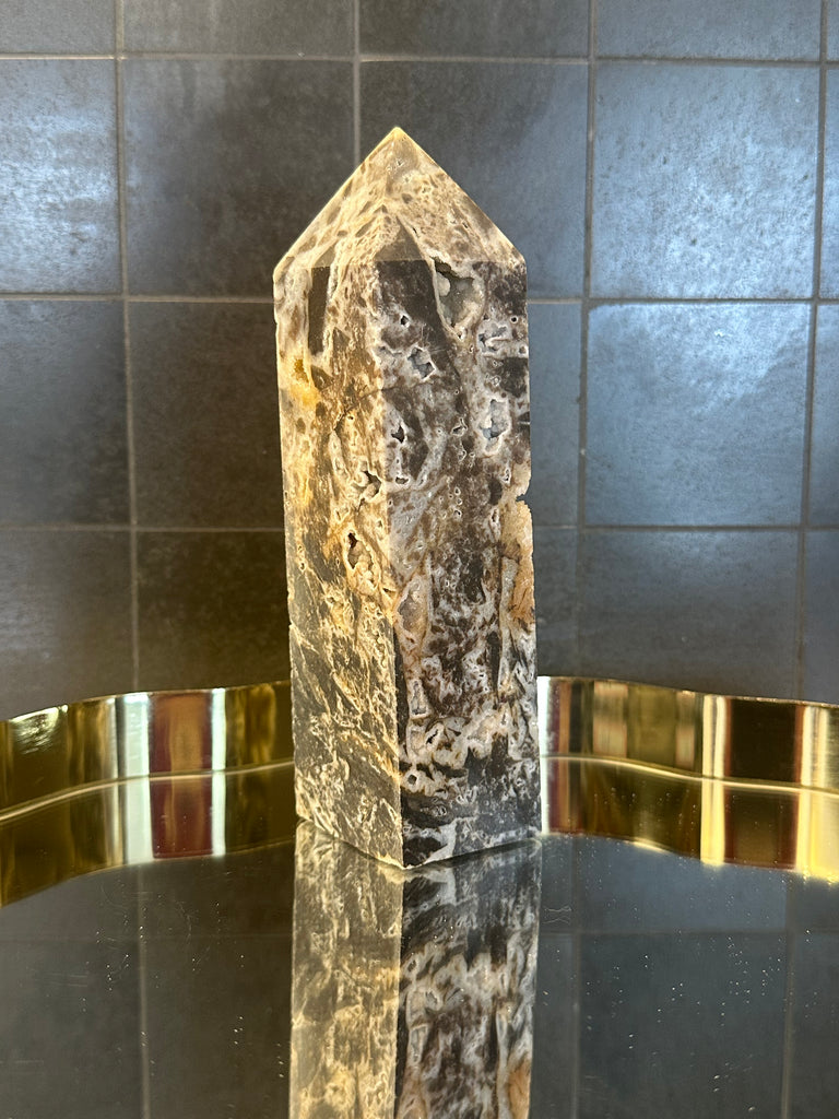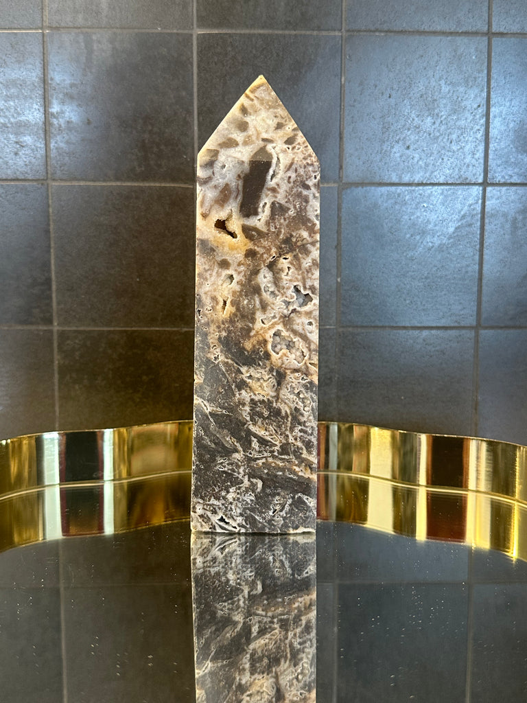 Sphalerite is a high-vibration crystal known for anchoring intense energies into the physical realm. The tower shape naturally amplifies and directs these energies upward and outward.