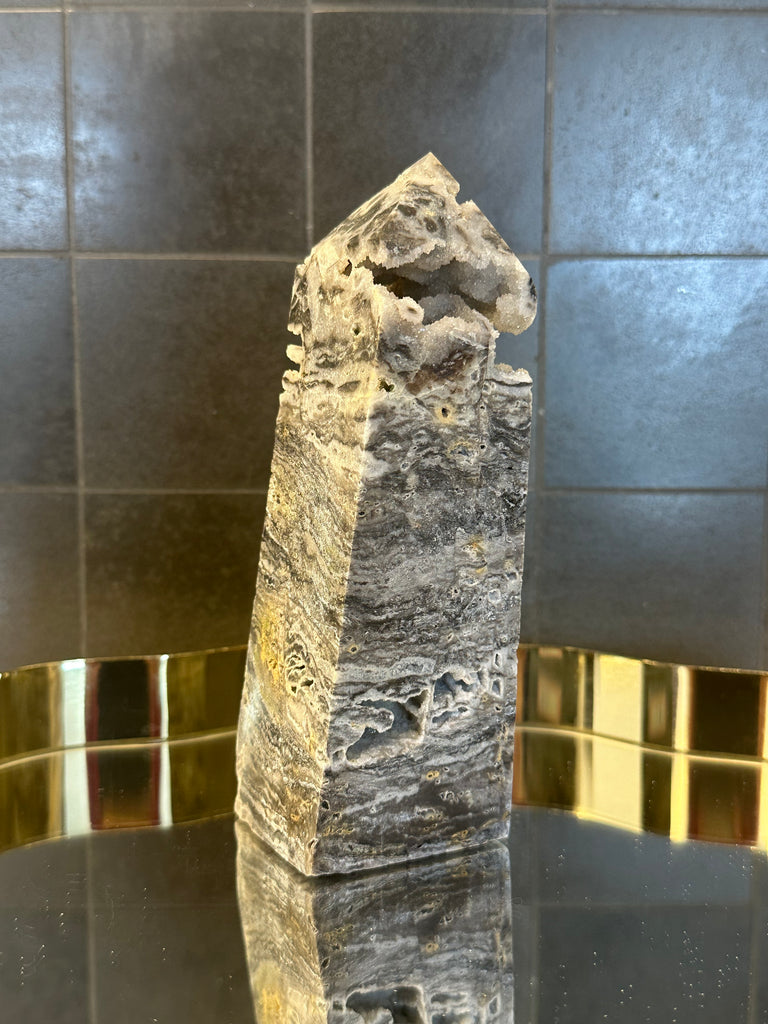 Sphalerite is a high-vibration crystal known for anchoring intense energies into the physical realm. The tower shape naturally amplifies and directs these energies upward and outward.