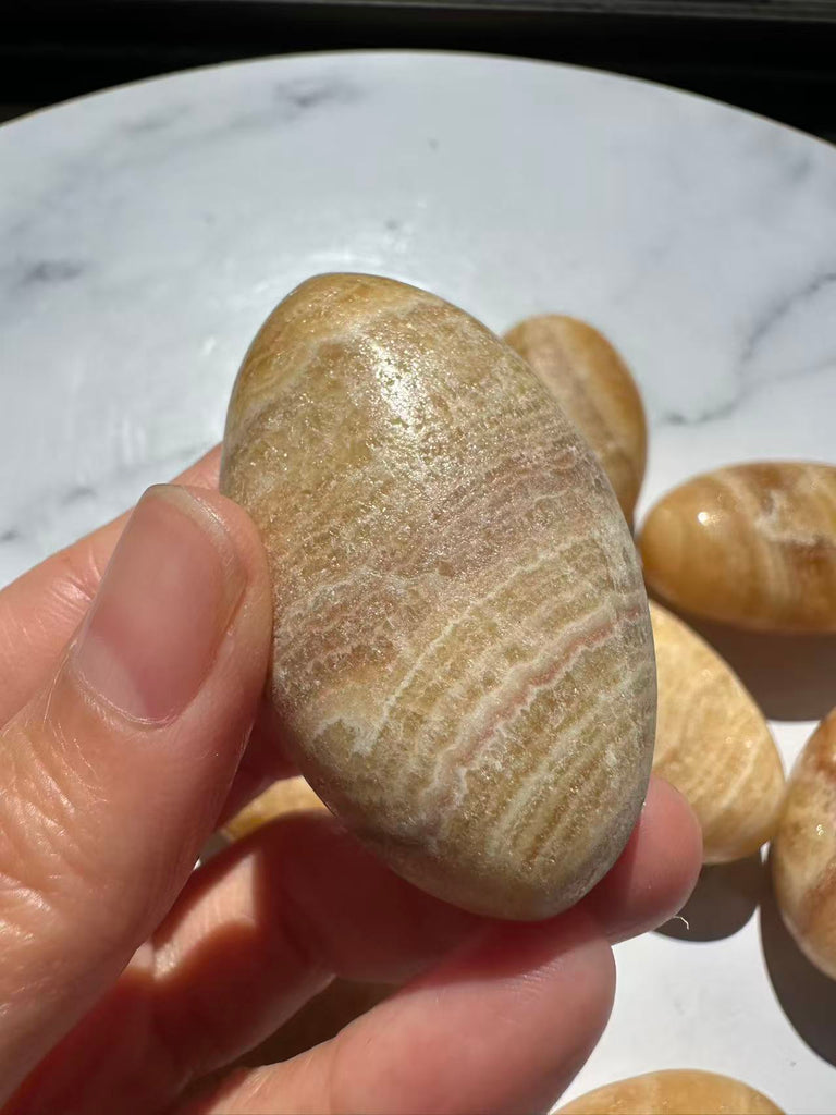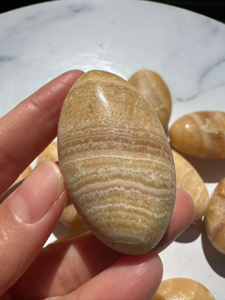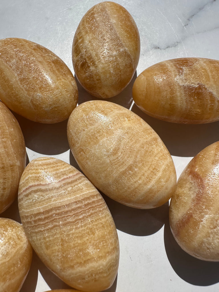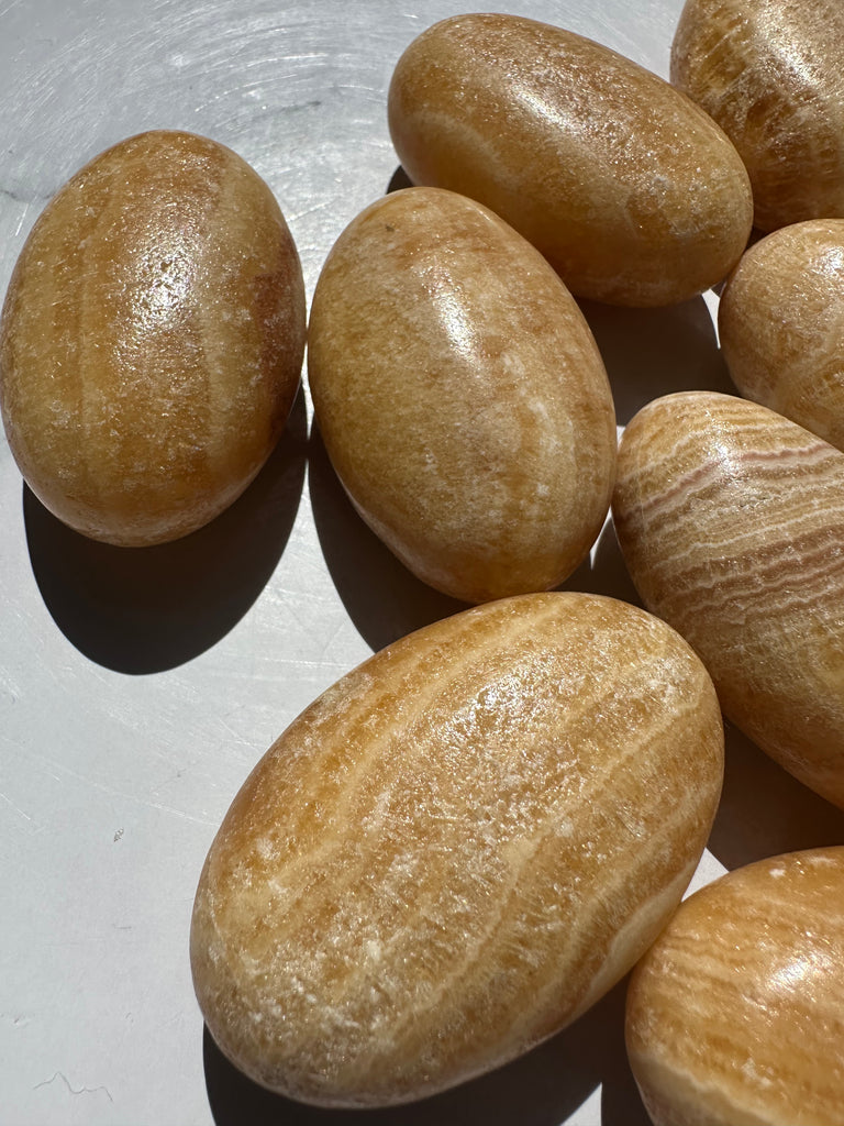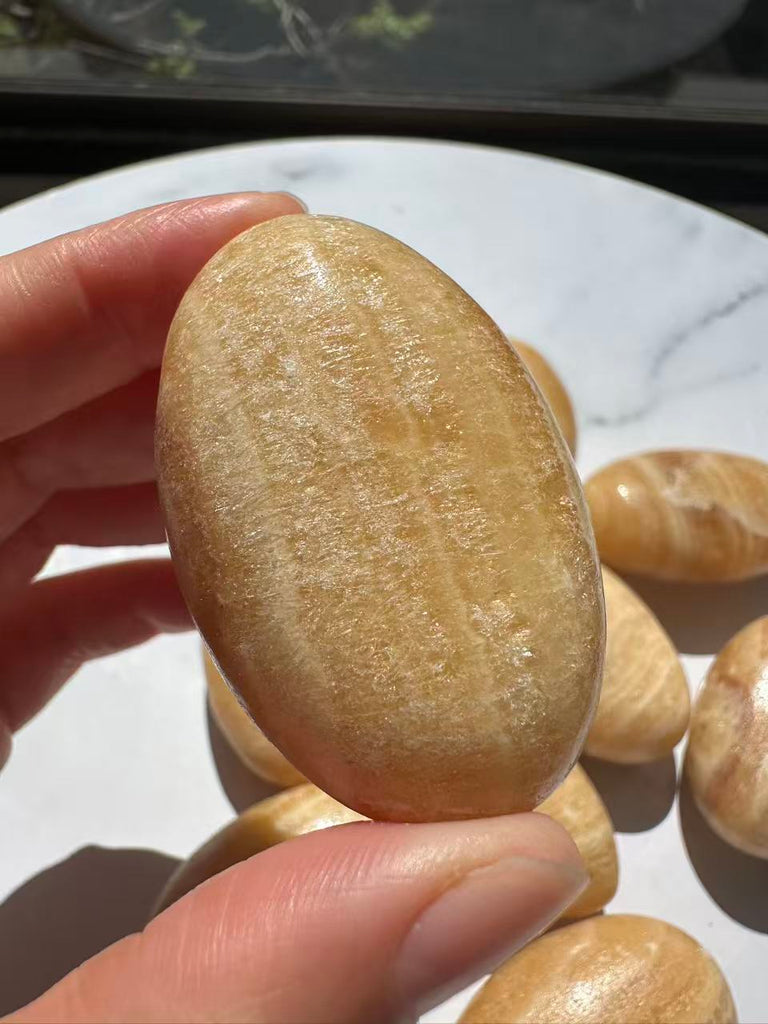 Natural Yellow Calcite — no dye, no coating; hand-polished oval palm/worry stone