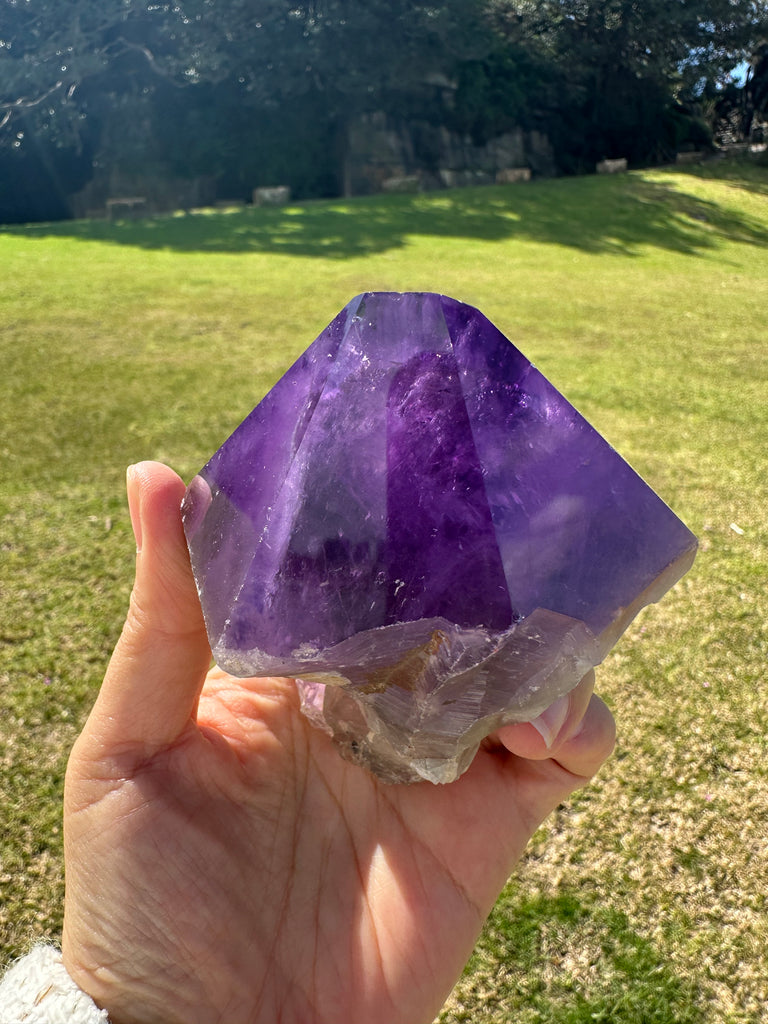 Experience the exceptional beauty of this AAAA-grade raw amethyst point from Uruguay—a stunning crystal with deep violet hues and a natural, unpolished finish. Known for its rich color saturation and high-quality formation, this amethyst wand makes a perfect addition to any crystal collection, home décor, or crafting project.