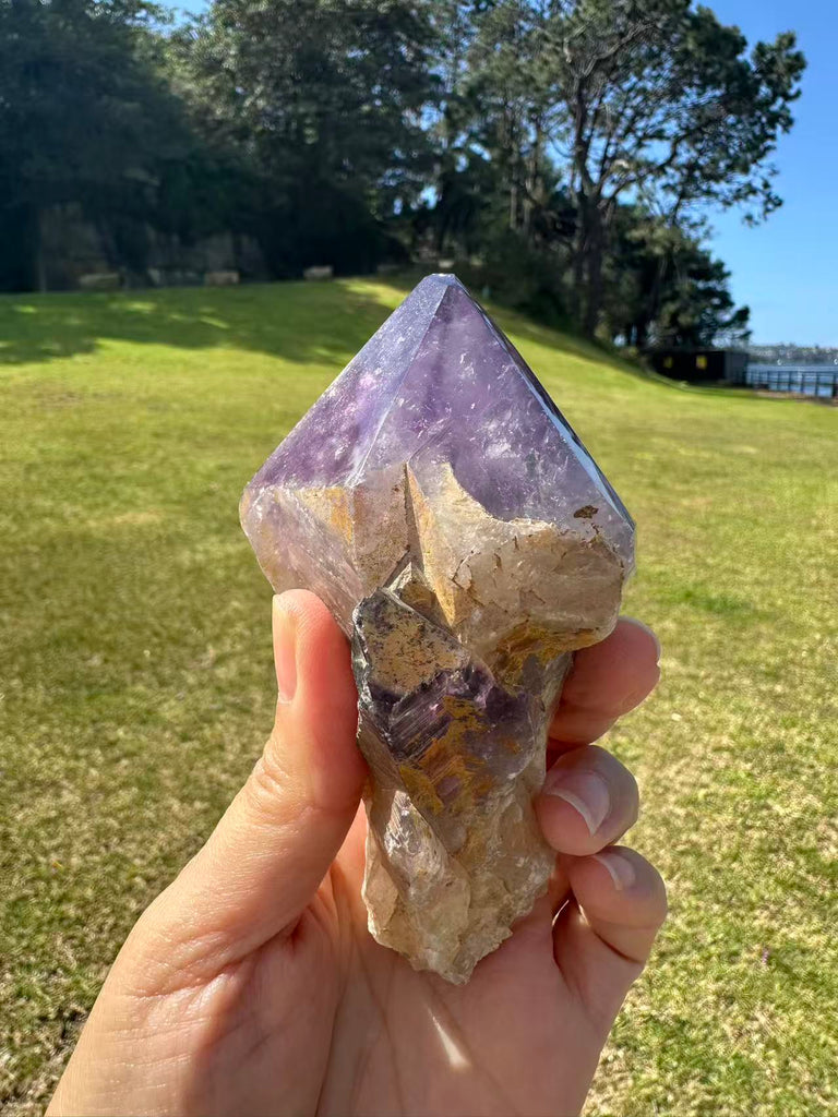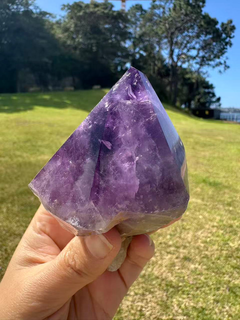 Experience the exceptional beauty of this AAAA-grade raw amethyst point from Uruguay—a stunning crystal with deep violet hues and a natural, unpolished finish. Known for its rich color saturation and high-quality formation, this amethyst wand makes a perfect addition to any crystal collection, home décor, or crafting project.