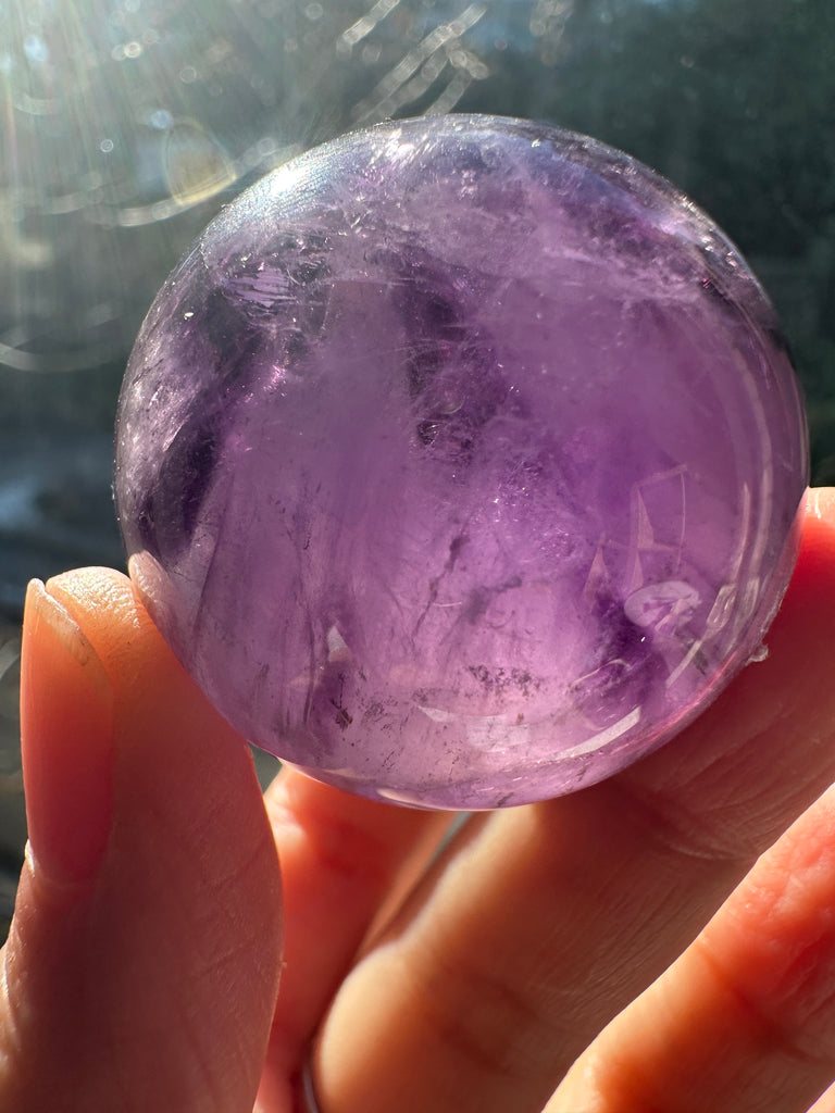 Carved and polished from high-grade natural amethyst, this crystal sphere radiates gentle, protective energy and is perfect for meditation, energy healing, or simply as a centerpiece to elevate any space.