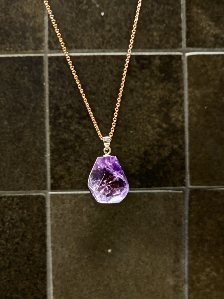 Elegant Minimalist Natural Amethyst Crystal Necklace ,Christmas Crystal Gift