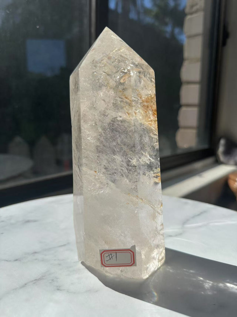 Extra Large clear quartz tower w Rainbow Obelisk High Quality Crystal Tower,Christmas Crystal Gift #1