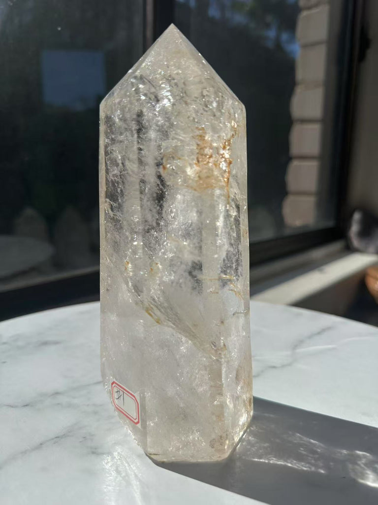 Elevate your crystal collection with this exquisite Clear Quartz Tower, ethically sourced from Brazil. This high-quality quartz obelisk shines with remarkable clarity and natural beauty.