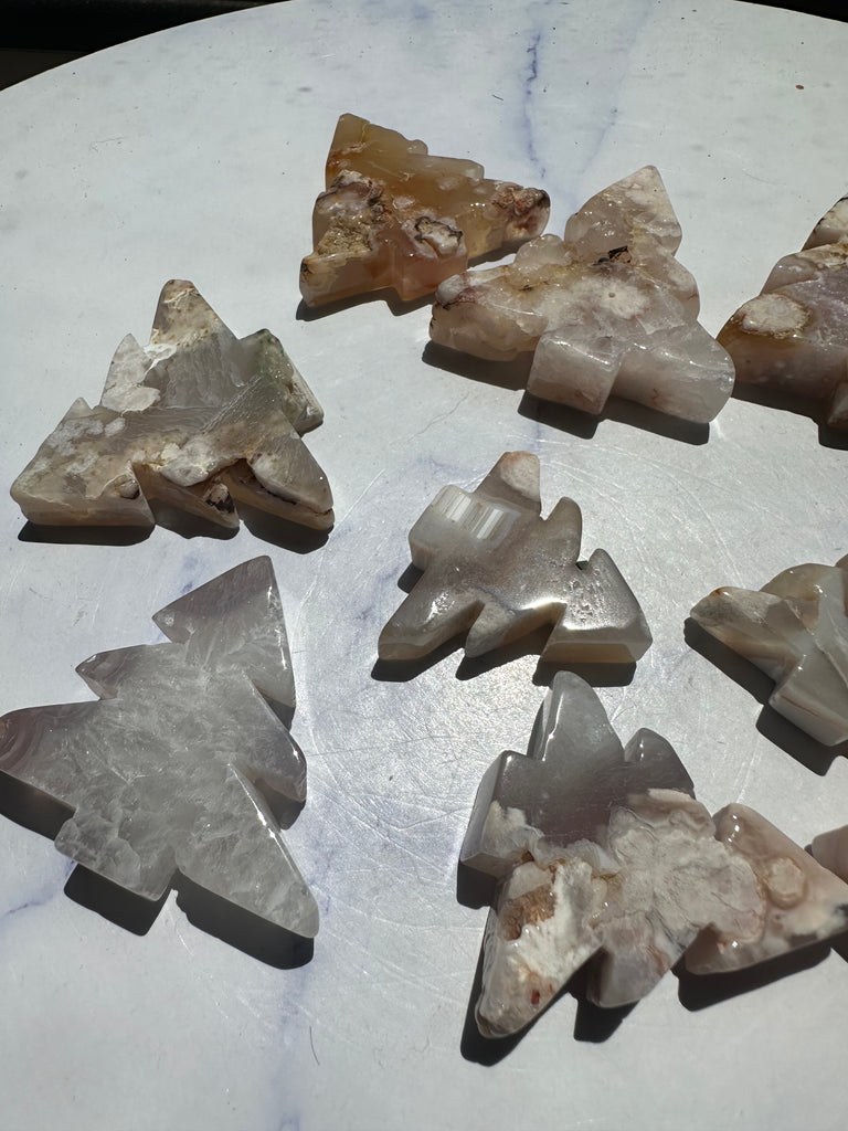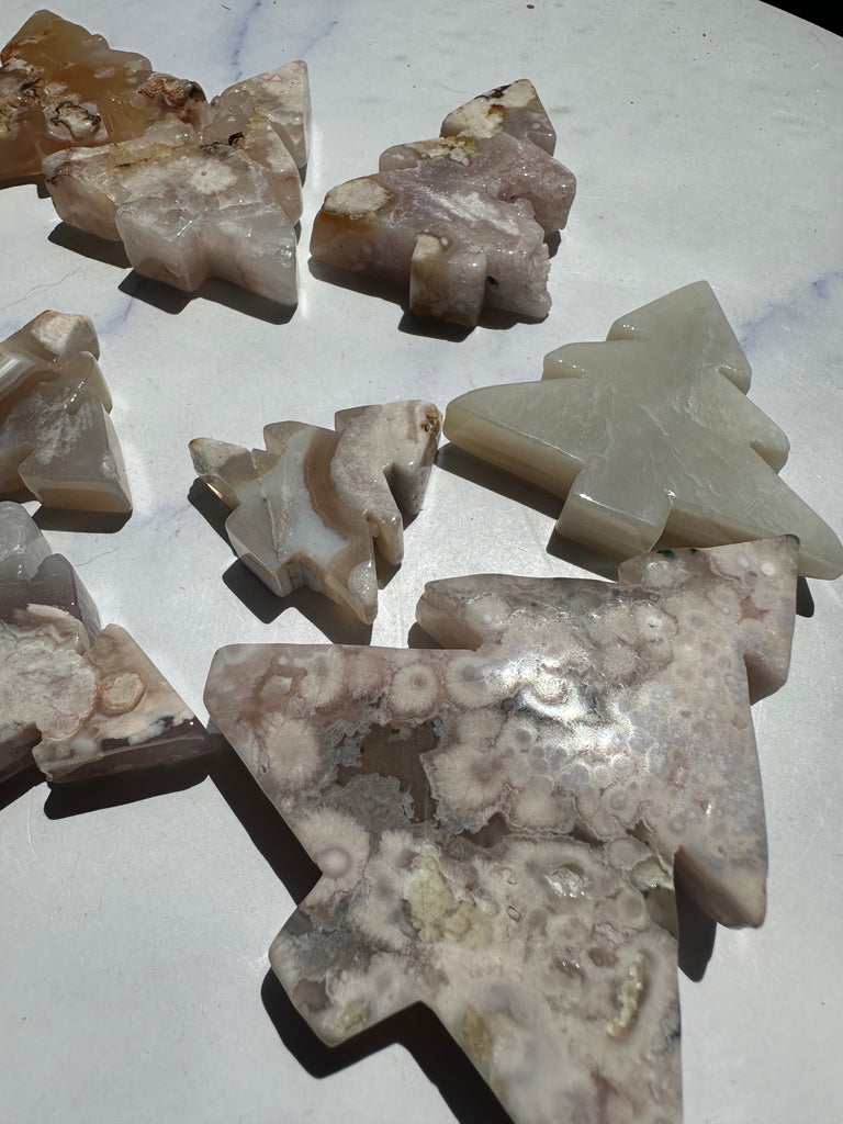 Handcrafted Flower Agate Crystal Christmas Tree | Manifestation & Holiday Decor