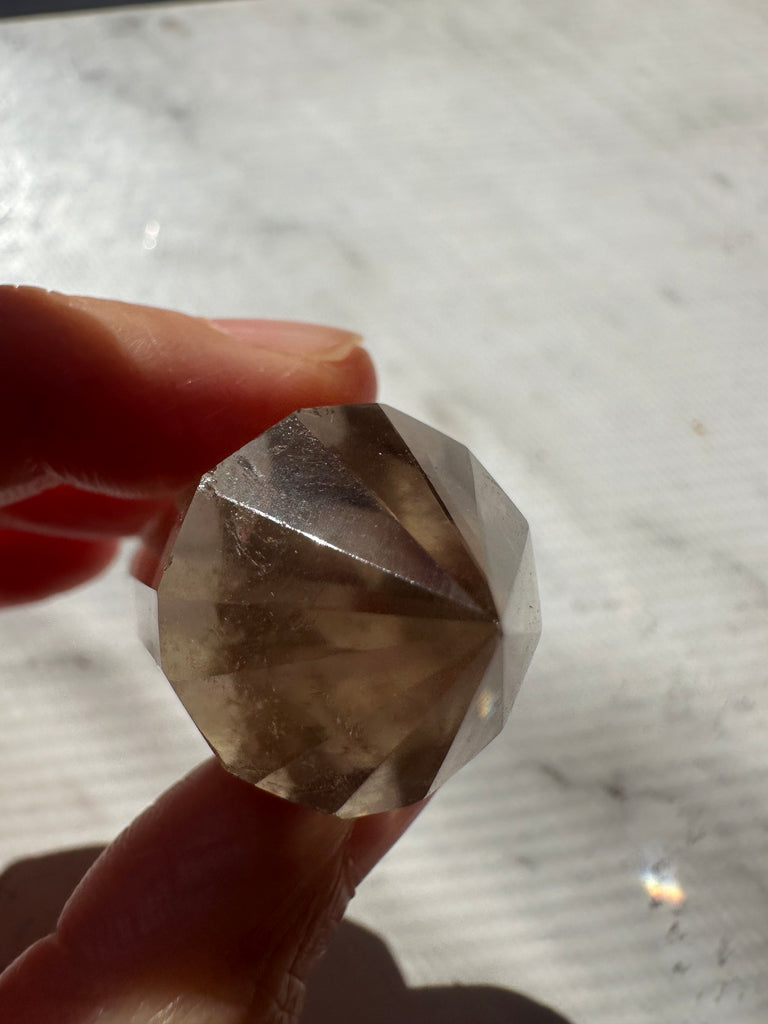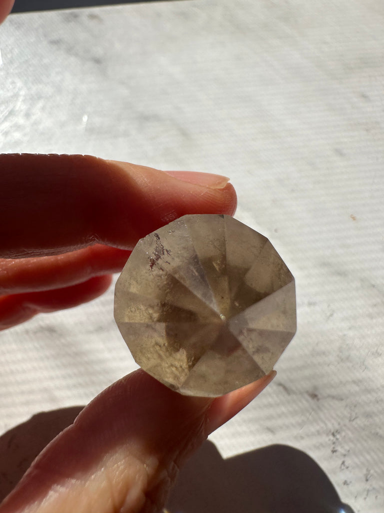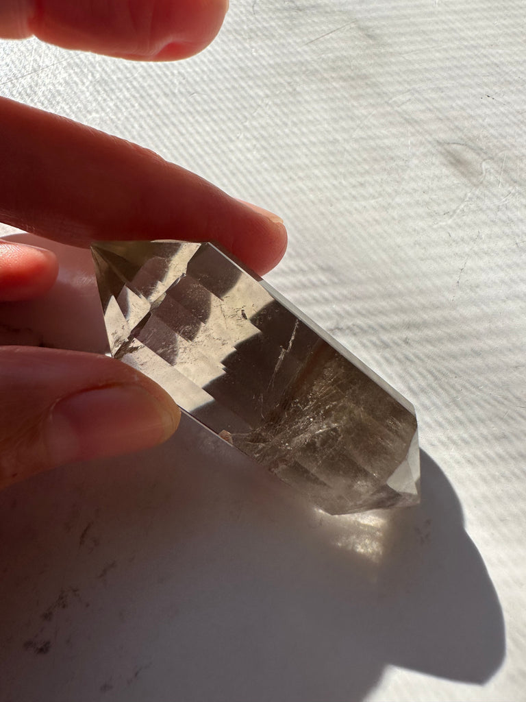 This Vogel wand features beautifully transparent, light-toned smoky quartz — ideal for those who seek gentle yet focused energy work. Carefully cut with multiple facets, it is designed to facilitate energy flow in and out, making it perfect for both personal and professional healing sessions.
