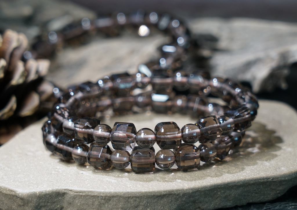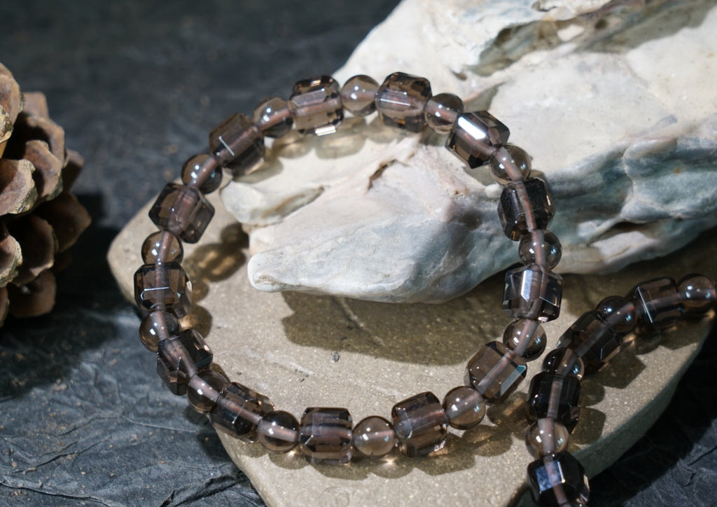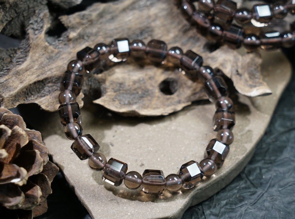 Stay grounded and shielded with this Ice Obsidian Cube Bracelet, crafted with 7.5mm cube-cut beads. Obsidian is a powerful protective stone that removes negativity, enhances clarity, and supports emotional healing.
