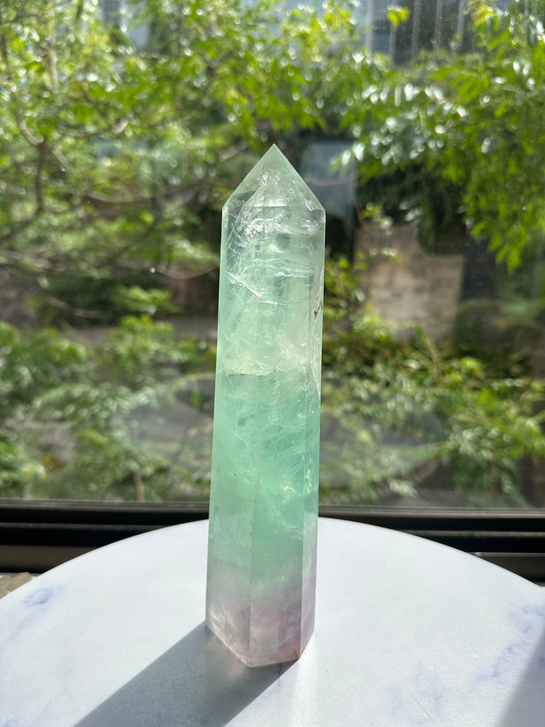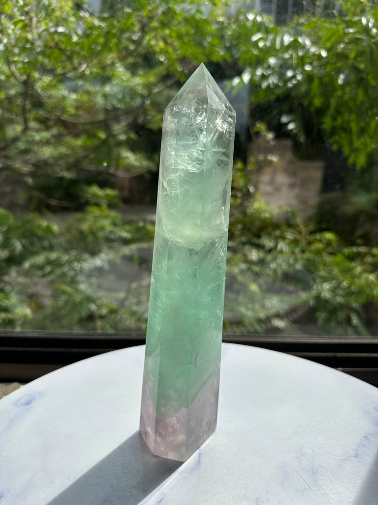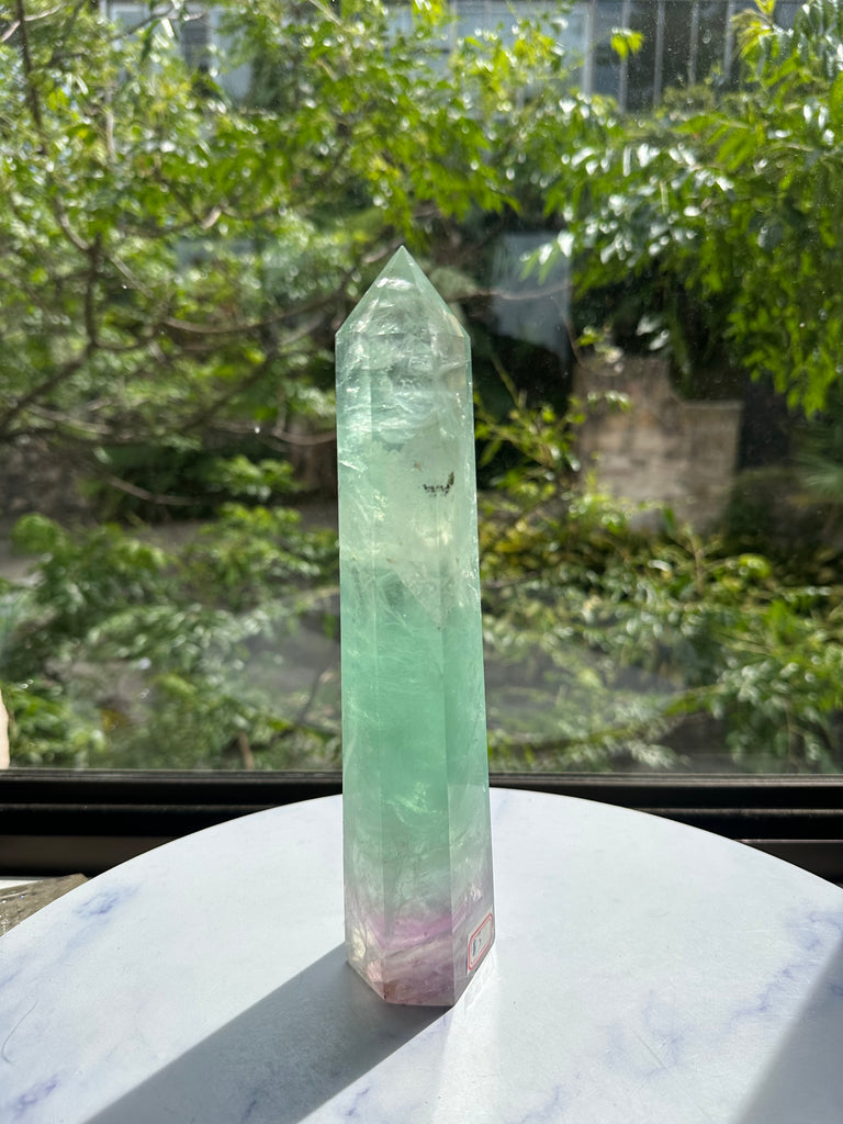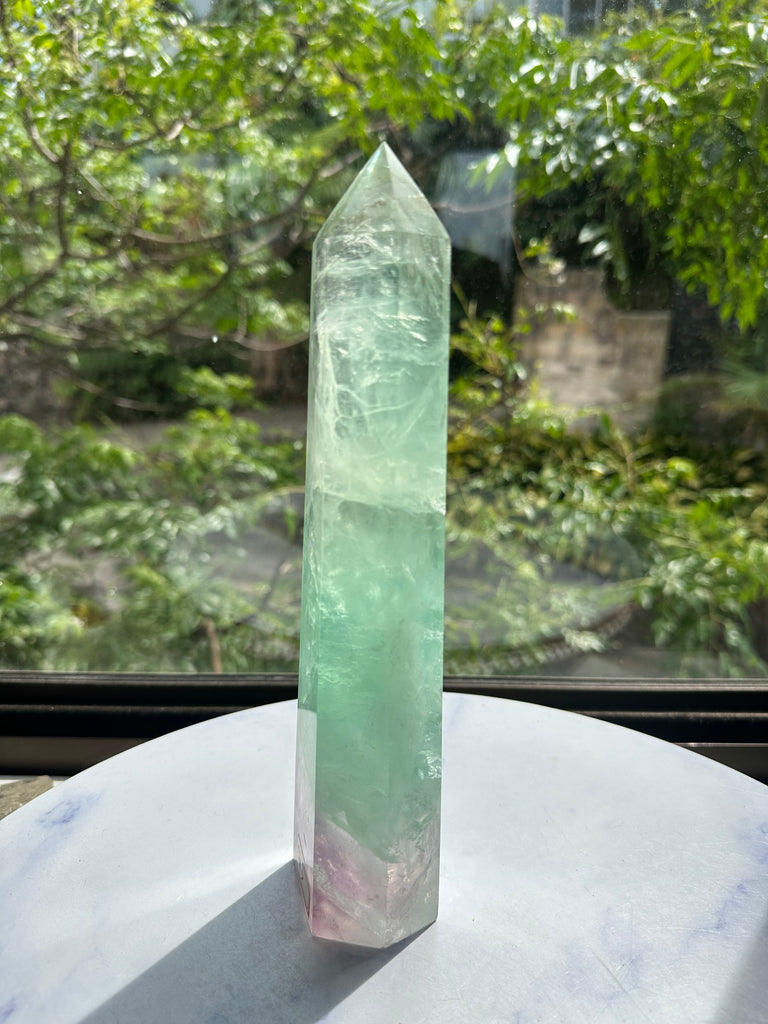 Introduction (The Hook - The Visual Appeal): Experience the mesmerizing beauty and dual-action benefits of this Large Watermelon Fluorite Tower. Named for its distinct, beautiful bands of green and soft pink, this crystal is a truly unique addition to any collection. The tower shape focuses its energy, making it an incredibly powerful tool for mental clarity.