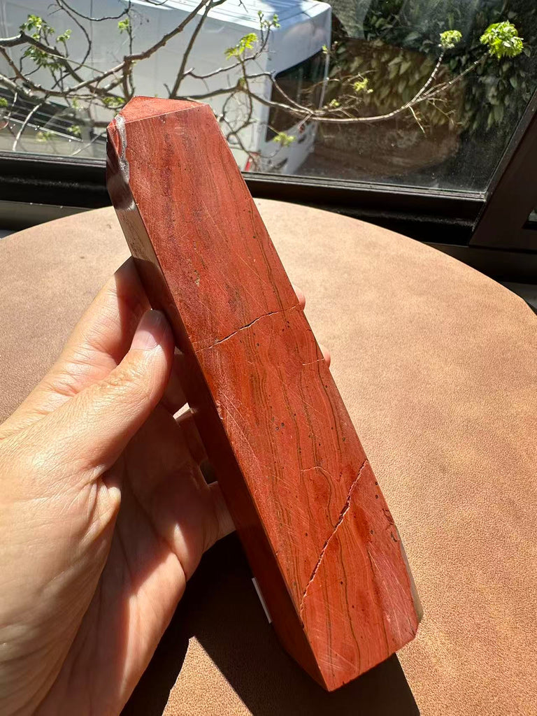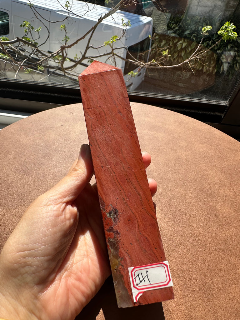 Bring warm, earthy energy into your space with a large jasper tower. Known for its grounded calm and protective vibe, jasper is a favorite for meditation corners, office desks, and statement shelves. Each tower shows unique swirls and desert-sunset banding—no two are alike.