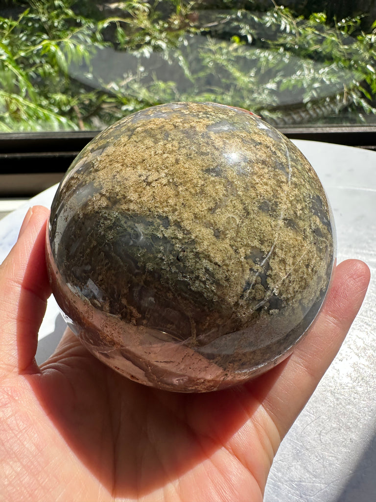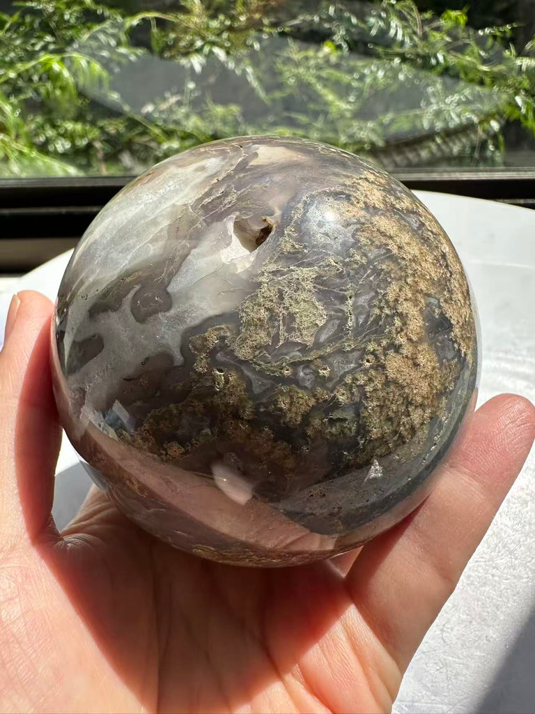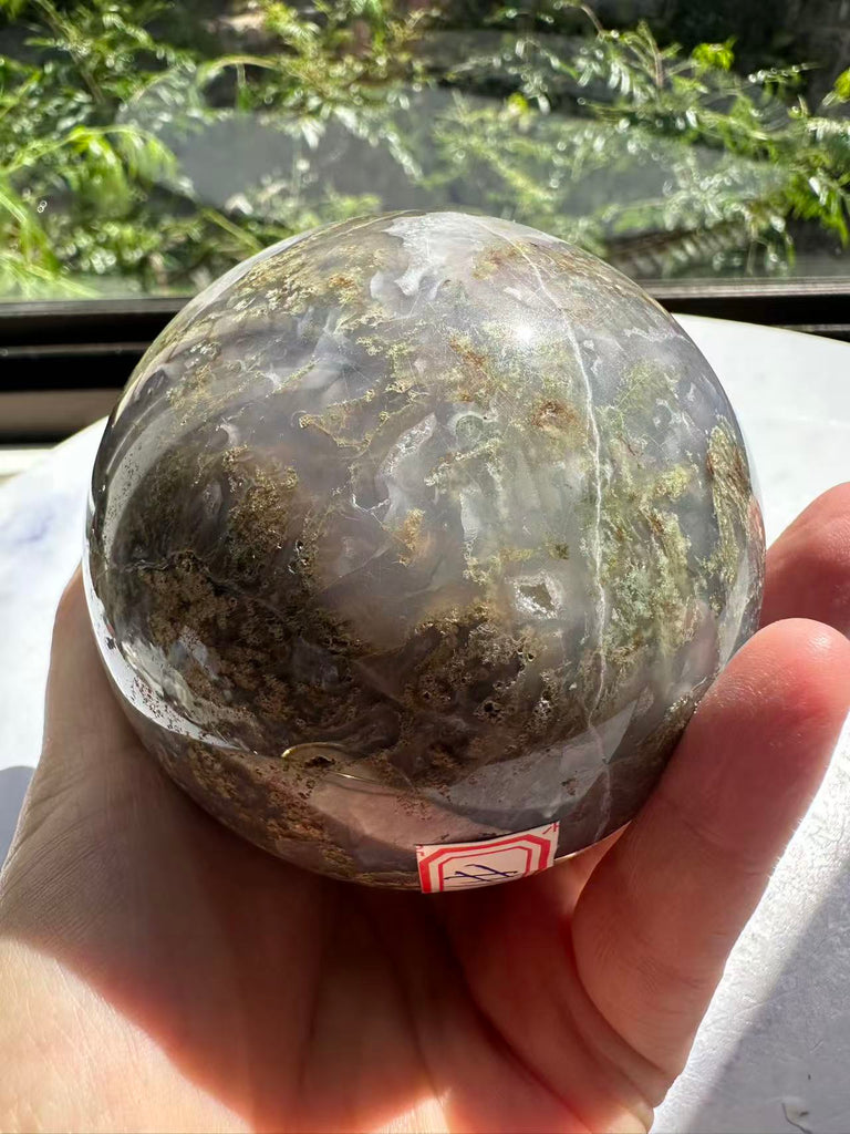 🌿 Large Moss Agate Sphere: Your Personal Piece of the Forest